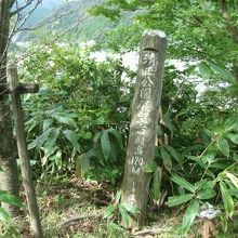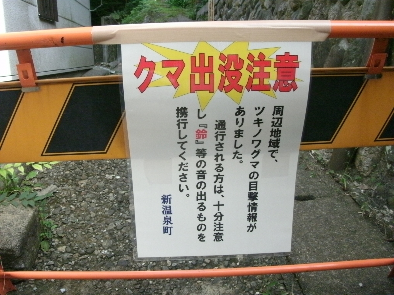 湯村橋の南側(左岸側)の袂から川沿いに細い道を、案内表示板(添付写真参照)に従って登っていきます。途中、民家のすぐ横を通っていくと『クマ出没注意』の標識(添付写真参照)があり、少々、ビビりましたが、熊よけの鈴を持っていなかったので、大きな声を出しながら坂道や急な階段を上って頂上に到着。