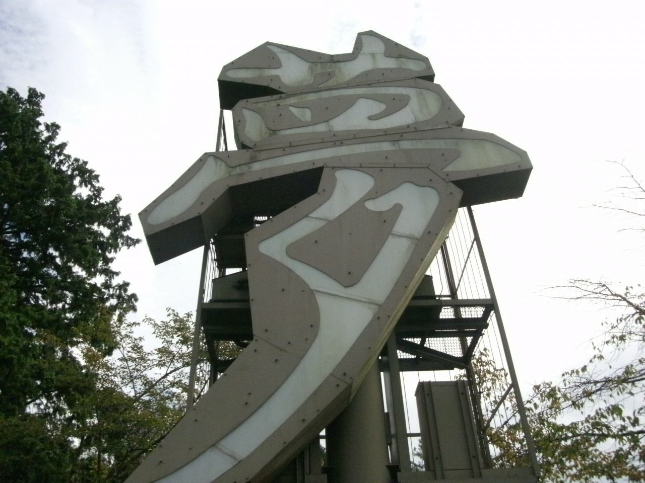 頂上は、東屋、説明板、湯村温泉のランドマークになっている“夢”文字の点灯装置などがある展望台になっていましたが、あまり手入れがされておらず、木々の葉っぱで遮られて眺望もイマイチでした。