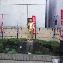 東京メトロ銀座線「田原町」駅 徒歩5分、「合羽橋交差点」の南西角、清水寺の隣のちょっとしたスペースにあります。金箔張りの等身大?の、かなりリアルな像です。「かっぱ橋道具街」誕生90周年を記念して、商店街振興組合によって平成15年に建てられました。ここから西方向へ2~3分の「曹源寺」には「雨合羽屋の喜八」のお墓もあります。「合羽橋道具街」を訪れた際には、是非「かっぱ河太郎像」と「曹源寺」にも足を運んでください。地名の由来を知ることができますよ。