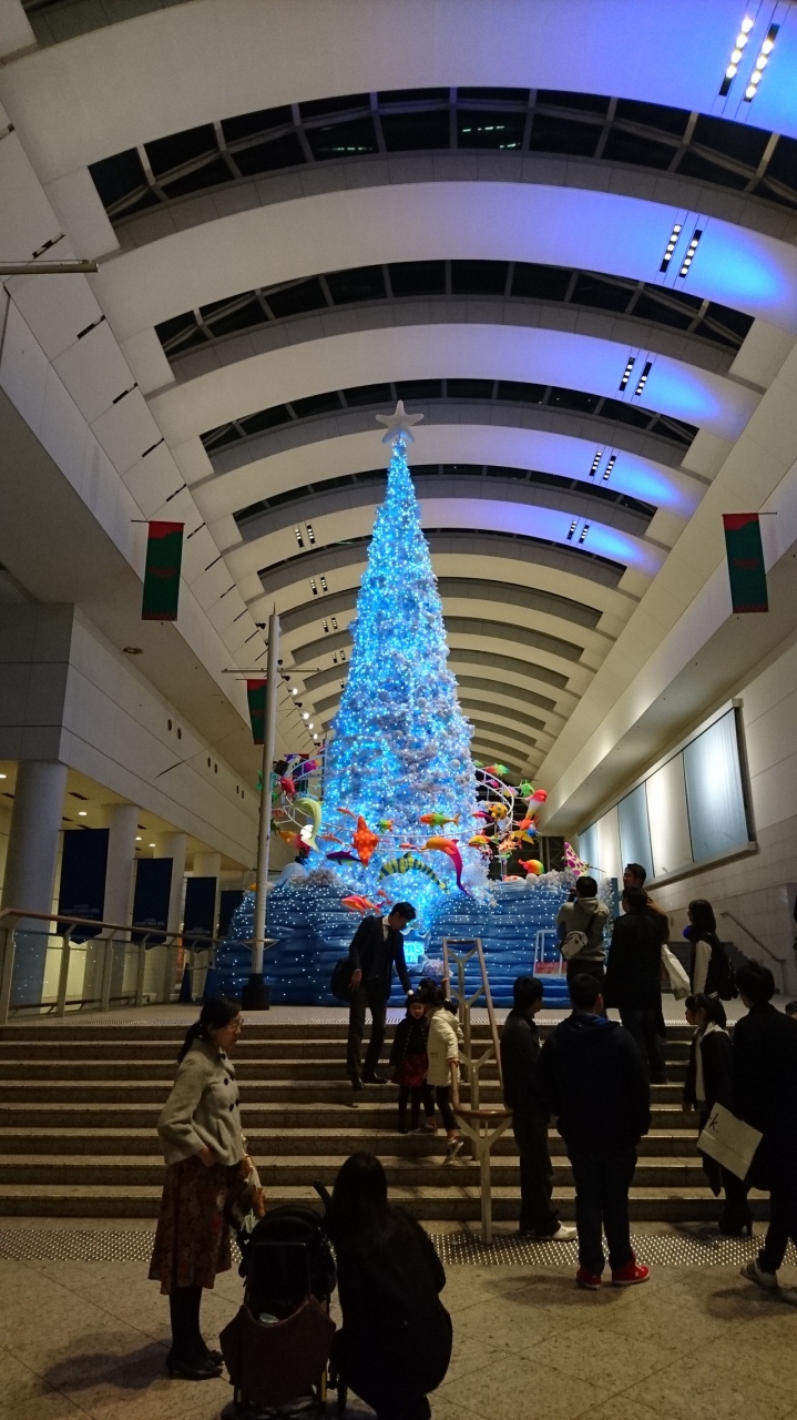 相変わらず白が基調のツリーの周りには、イルカ等が配されており、海とツリーの不釣り合いなコラボレーションでした。