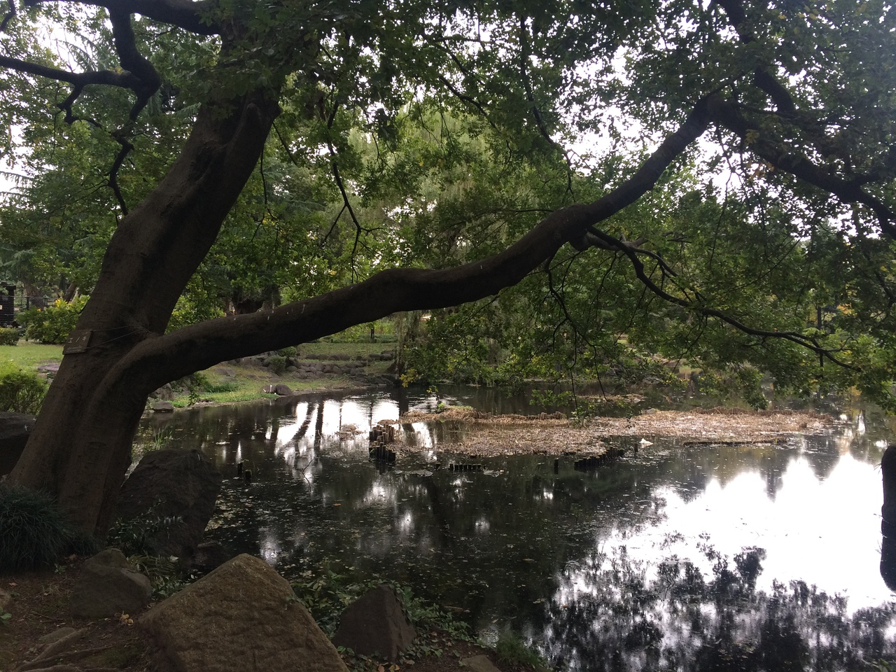 有楽門から直ぐ左側にある結構広い池で日比谷門の手前まである大きな池です。木々や石の配置が心を和ませ、東屋もあるので座ってゆっくり休むことが出来ます。日比谷通り側に石垣があり、階段を数段上り、石垣の上からだと池全体を見渡せベンチもあります。