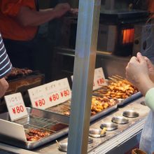 なんだか昼間っから賑わっている店があるなあ、と思うと焼き鳥屋さん。店内は満席でしたが横道に入ると立ち食いコーナーが。妙な焼き鳥焼き機で焼かれた焼き鳥を眺めながら、焼き鳥を頂きます。駄菓子屋ですね、ここ。