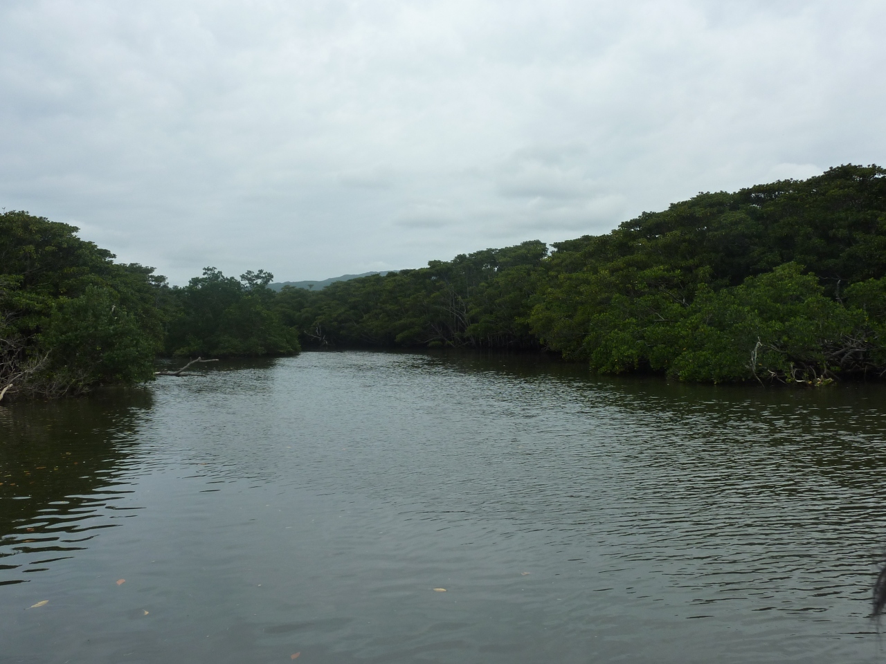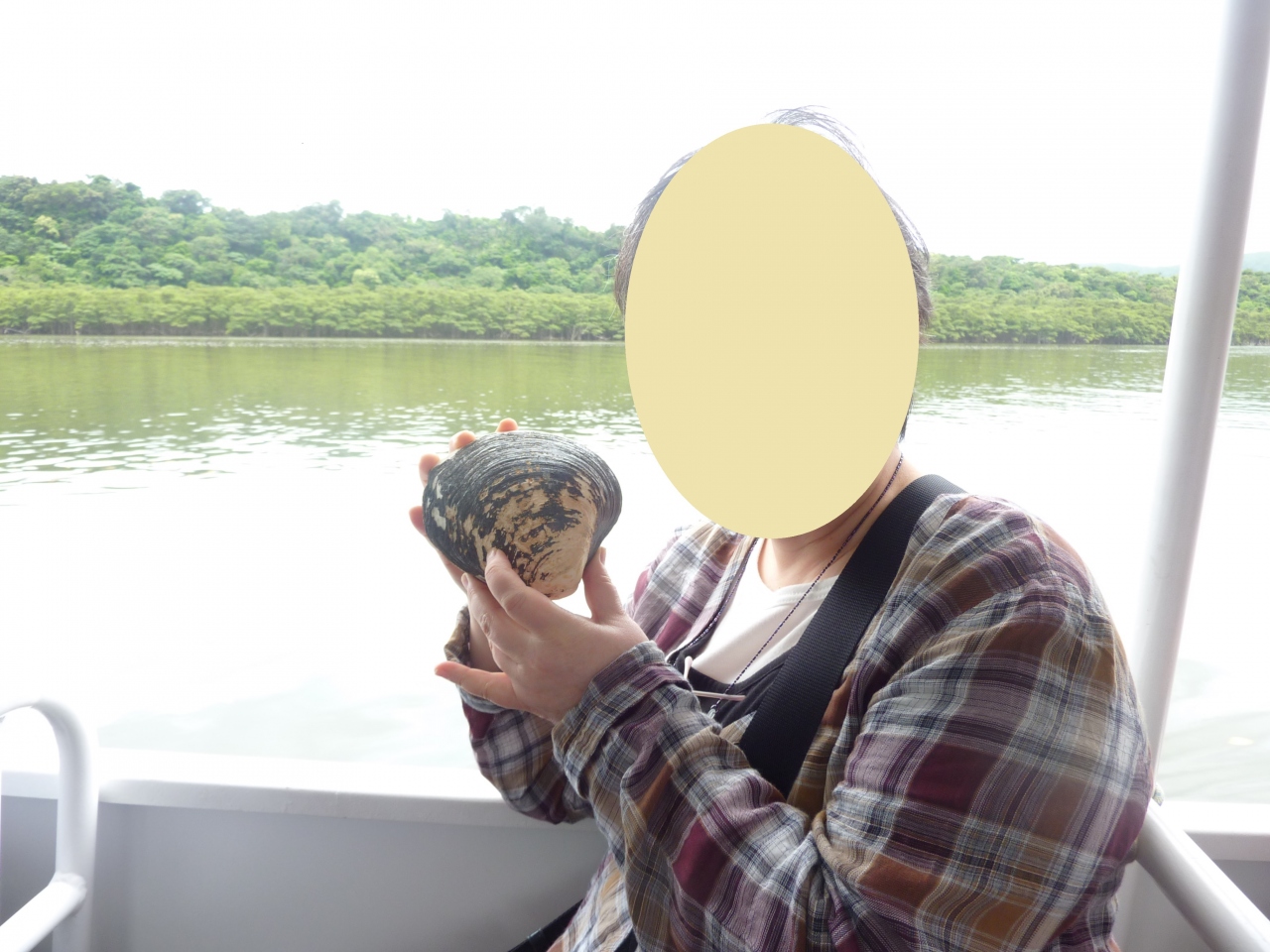 橋を潜って川に入ると、両側にマングローブの林が続き、さまざまな種類の植物を目にし、サキシマスオウノ木の停泊地まで進めます。干潮になると川の中州が広がり、通行できなくなることもあるので、注意が必要です。ここでとれるシジミは人の握りこぶしよりも大きくなるので、一度見ると楽しめます。