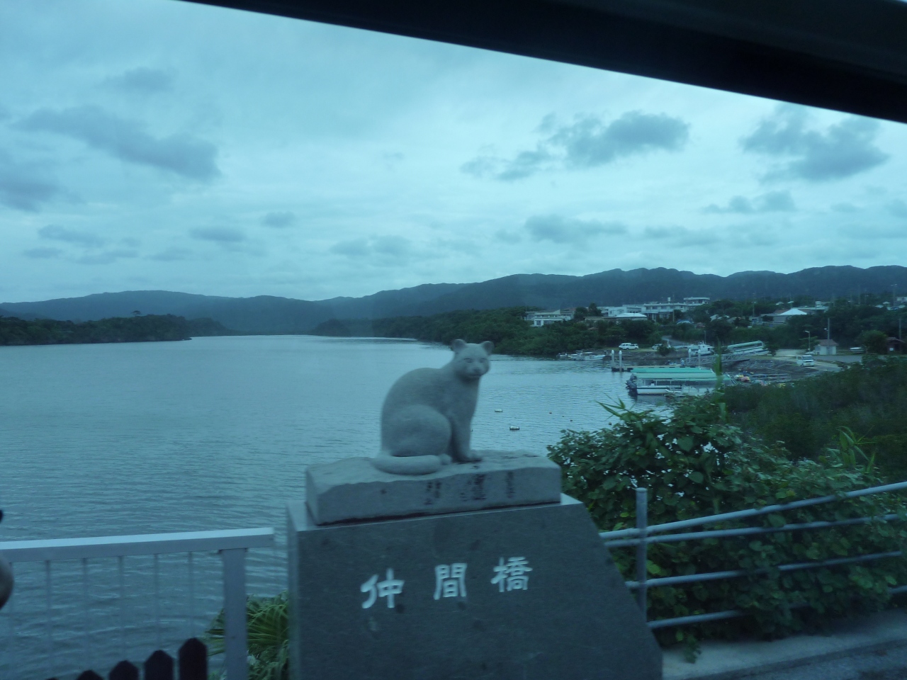 大原港から出る観光クルーズ船で川を遡る事が出来ます。道路で行くと、川にかかる橋の欄干にイリオモテヤマネコの像が見えます。