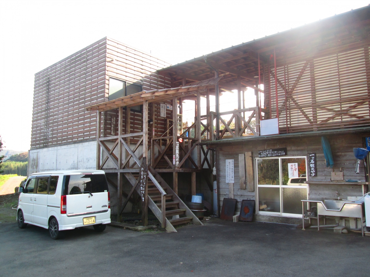 国道294号線を走行していてやな場があり寄って食事をしました、向田交差点そばにあり看板があるのですぐわかりました、食事をする場所は高台の眺めが良い場所にありました、今回は鮎の塩焼きが3匹付いている定食(1500円)を食べました、ここでは自分で焼いて食べることもできます、焼きたてを美味しく食べることが出来ました。