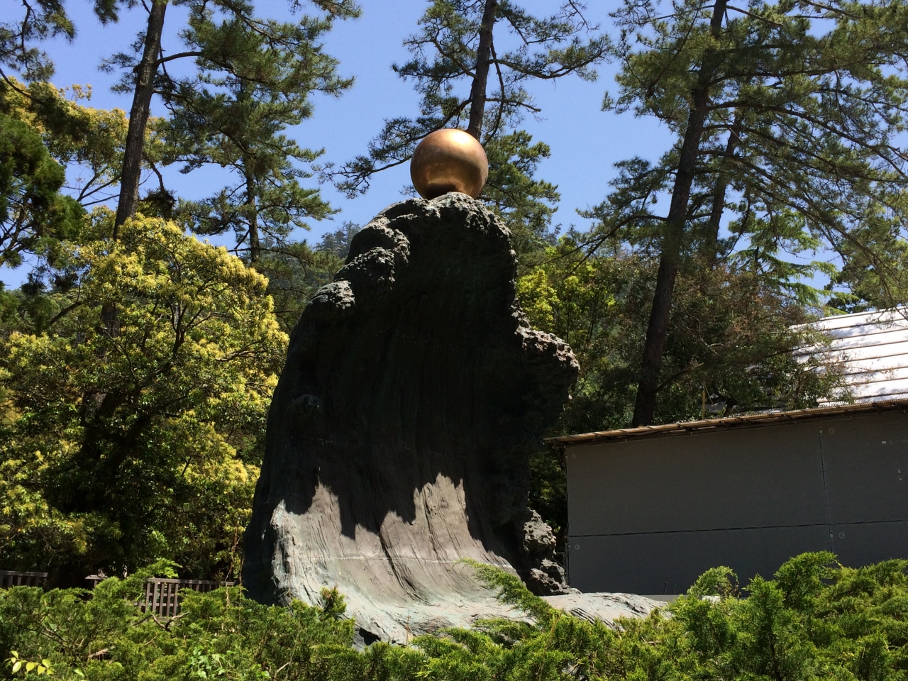 この銅像は、縁結びの神様、大国主大神が海の神から幸魂と奇魂のおかげをいただき、ムスビの神様となった場面をあらわしているそうです。