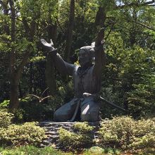 島根県の出雲大社内にある大きな銅像。松並木の参道が終わった辺りの銅鳥居をくぐる手前右手にあります。かなり大きいので、見つけるのは容易かと思います。