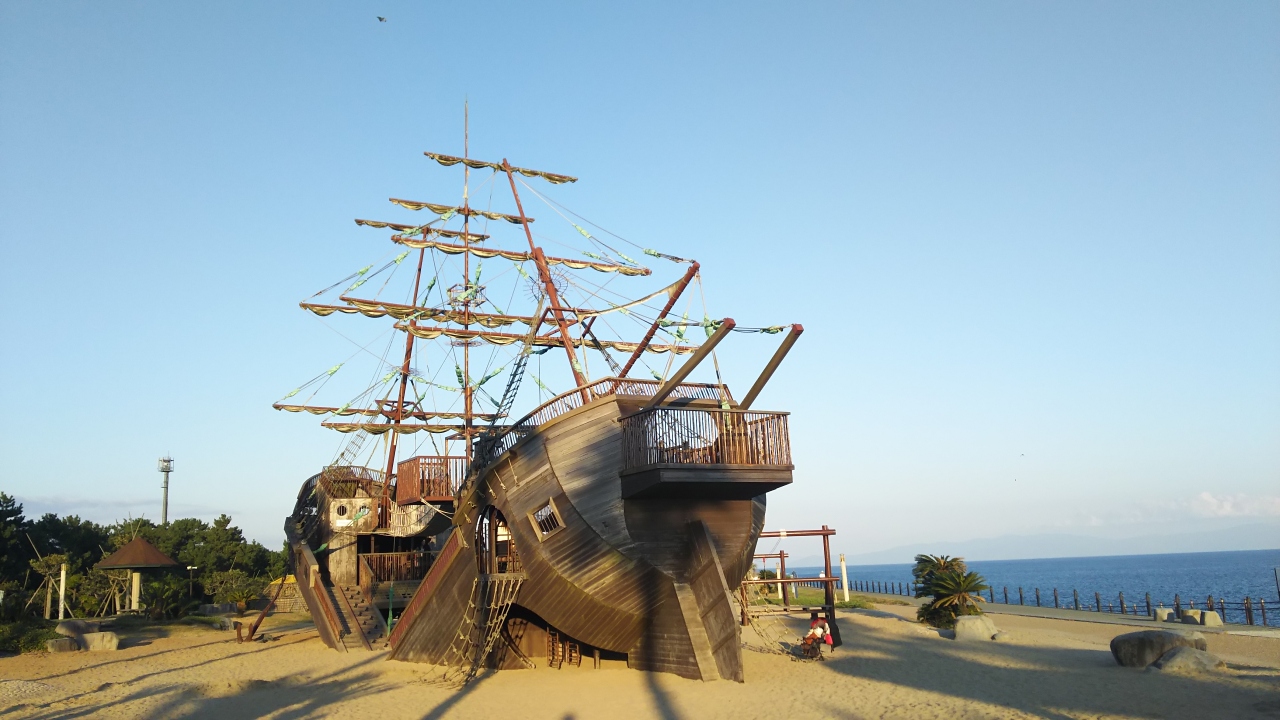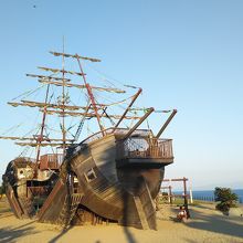 沈没船をイメージした帆船遊具や魚礁遊具など大きな遊具があります。