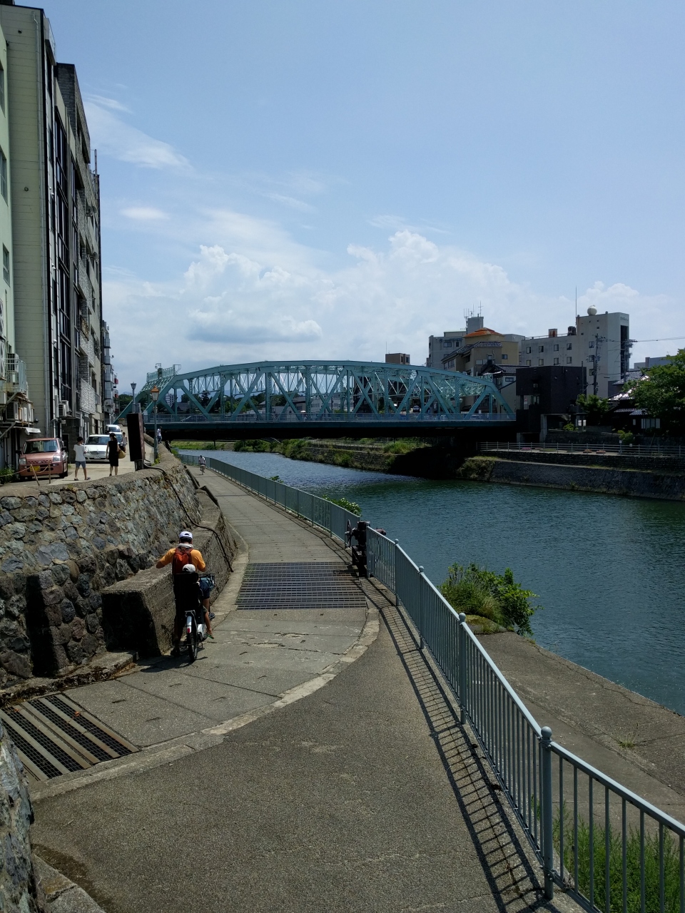 「犀川大橋」は金沢駅からバスでにし茶屋街に行く時通った。珍しい鉄骨トラス橋だった。犀川にかかる橋で、国の登録有形文化財に登録されている。昼飯が近くで犀川に出ると、犀川大橋全体が見れた。レトロモダンな橋だ。