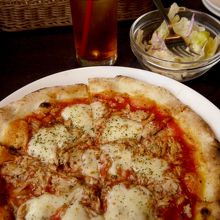 ほぼ本場イタリアのピッツァだが、ツナをトッピングするのは、日本オリジナルと思われる(イタリアでもツナは食べられているが、こうした食べ方はしないらしい)。
