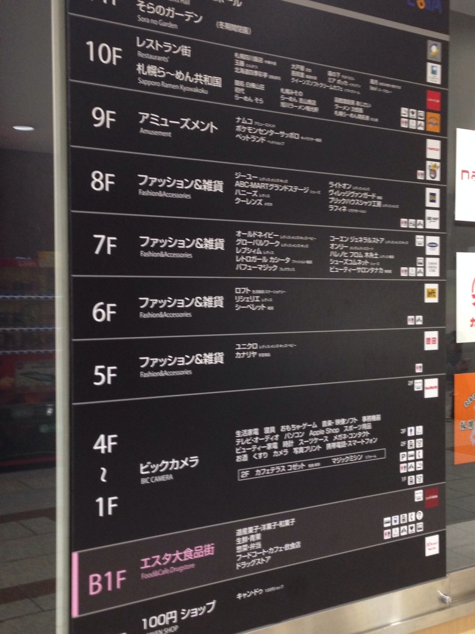 札幌駅南口に建つ商業施設。ファッション、食品、レストラン なんでも揃う。洗練された感じはなく庶民的な雰囲気が 利用しやすい。