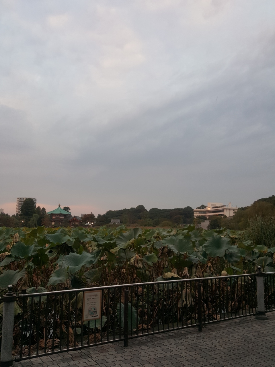 池の向こうには高層マンションが見えます。