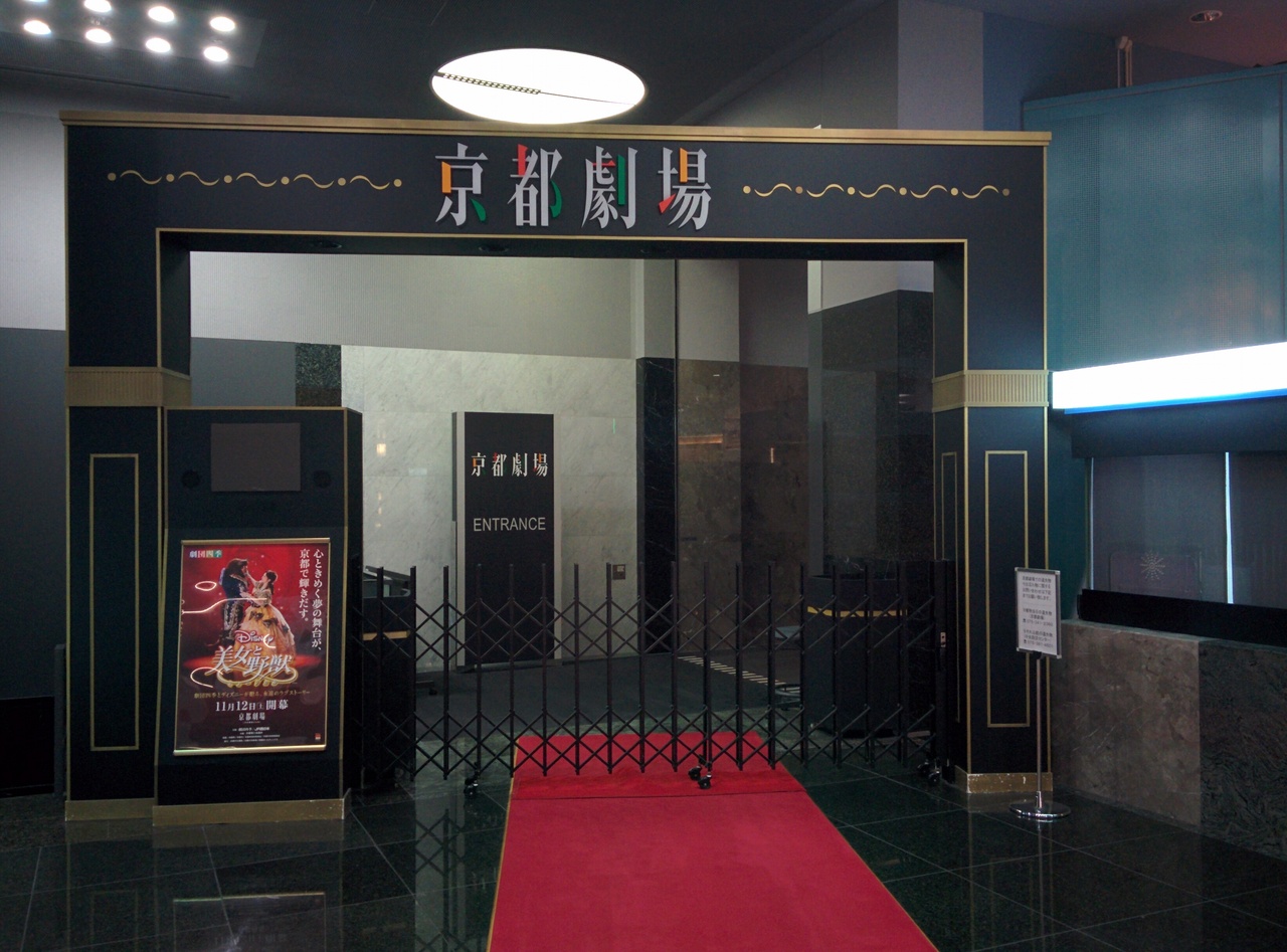 訪れた当日、劇場のエントランスは閉鎖になっており「美女と野獣京都公演・11月12日開催」の掲示物が掲出されていましたがスタッフやお客さんの姿はなく、ひっそりとしていました。