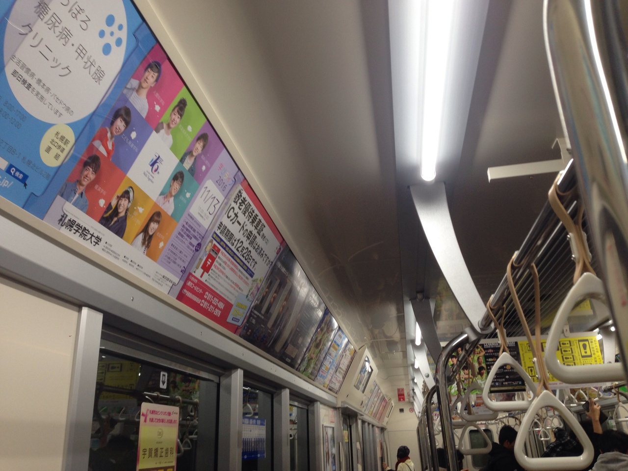 北海道出身の知人から聞いていた『地下鉄の車内には網棚がない』という衝撃の噂、本当でした。やたらスッキリとしている。ラッシュ時 不便でしょと思いますが。