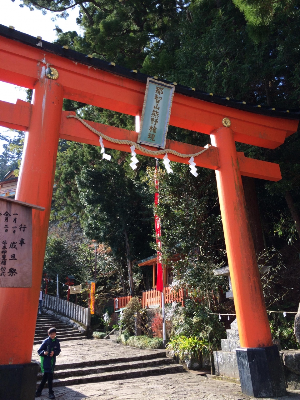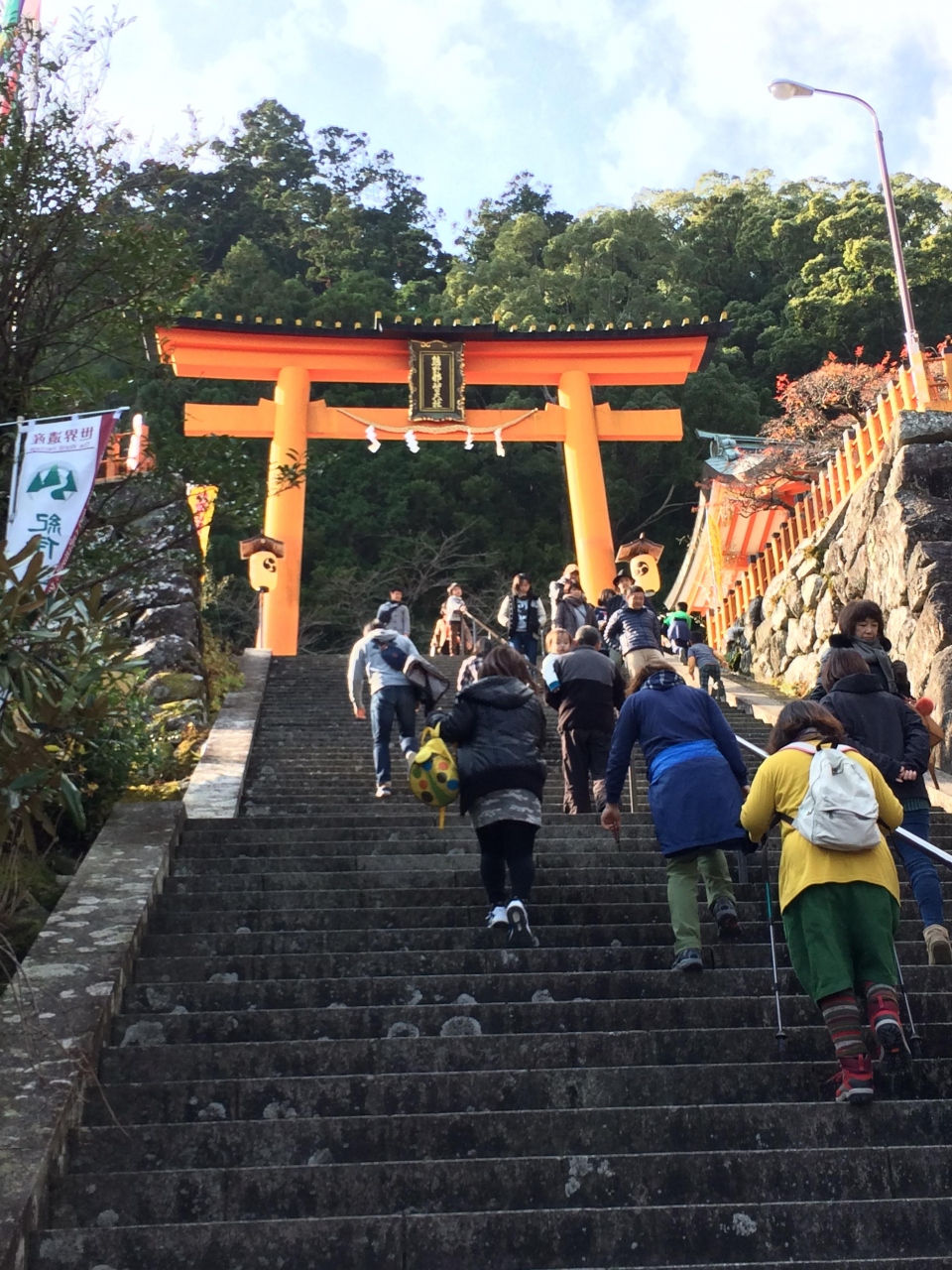 那智の滝を出て、近くの裏参道ではなく表参道の方から登ったが、数百段もの階段があり、結構上るのが厳しかった。