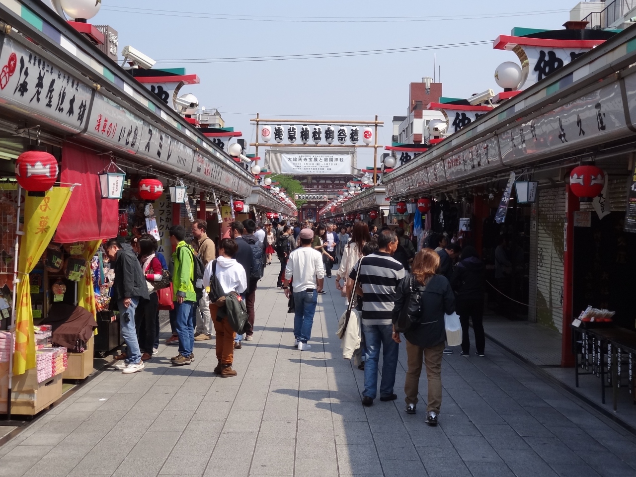 浅草寺へ向かう仲見世通り。