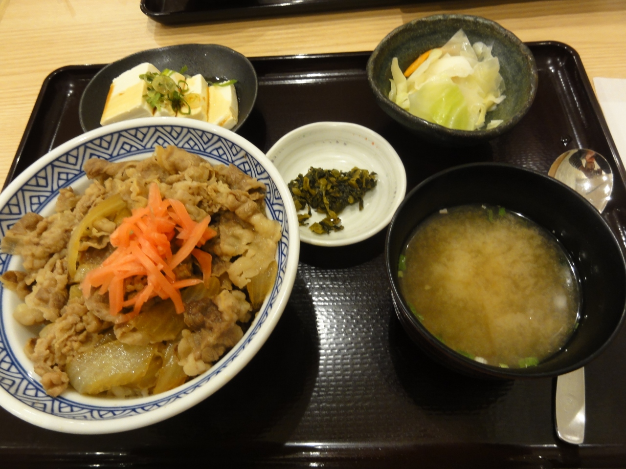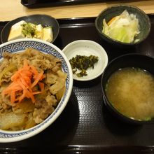 LCC利用でソウルへ行く時に利用しました。出国後、早めの昼食とお店を探してたら吉野家がありました。早い時間で混雑もなく、ゆっくり出来そうでした。メニューは牛丼の他に豚カツや鰻、カレー、生姜焼き等もありました。牛丼セットには冷奴もついてるのですね。どこで食べても変わらぬ美味しさでした。