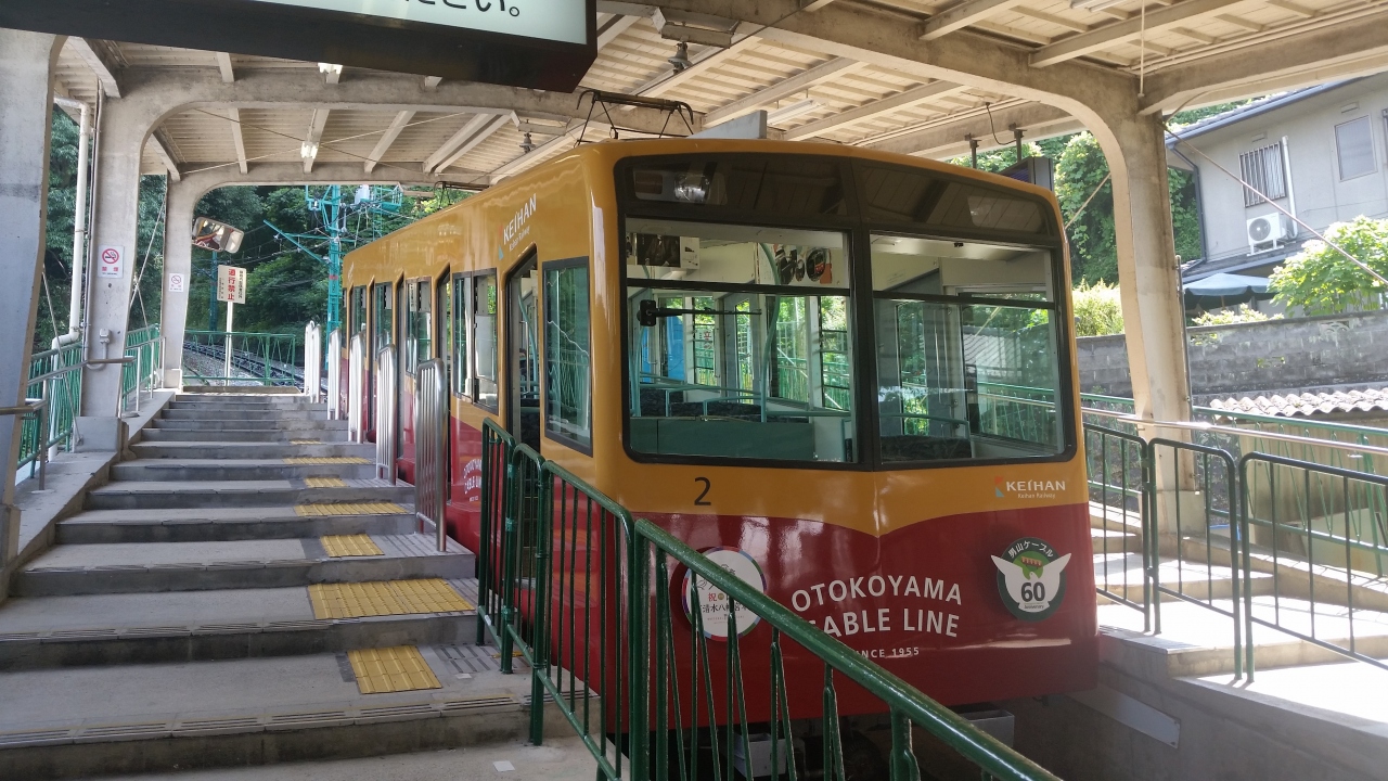 京阪八幡市駅の改札を出て右に進むとすぐにケーブル駅があります。片道200円とリーズナブルで、5分ほどで男山山上駅に着きます。石清水八幡宮まで参道を歩くのは時間もかかり、体力的にも少しきついので、特に行きは男山ケーブルを利用したほうがよいでしょう。