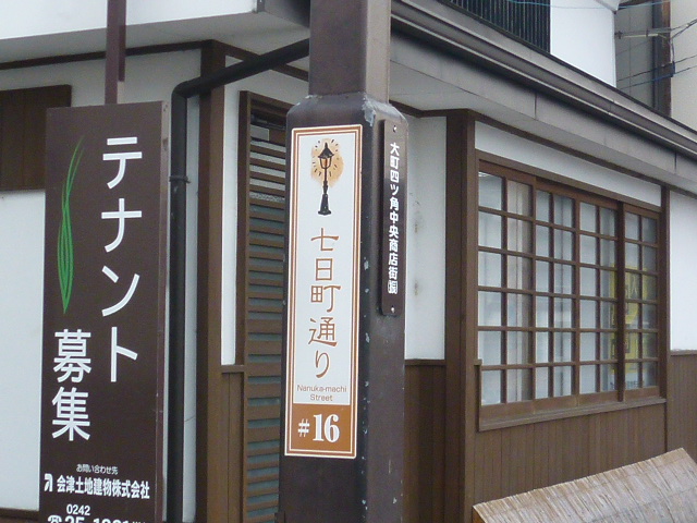 七日町駅前から東に大町札の辻あたりまでの約800mほどの通りで、両側には時代を演出するかのような蔵造りの家屋や洋館などが点在し老舗の漆器店や会津藩ご用達の絵ろうそく店や地元で人気のカフェやレストランがあってランチなどにお勧めです。