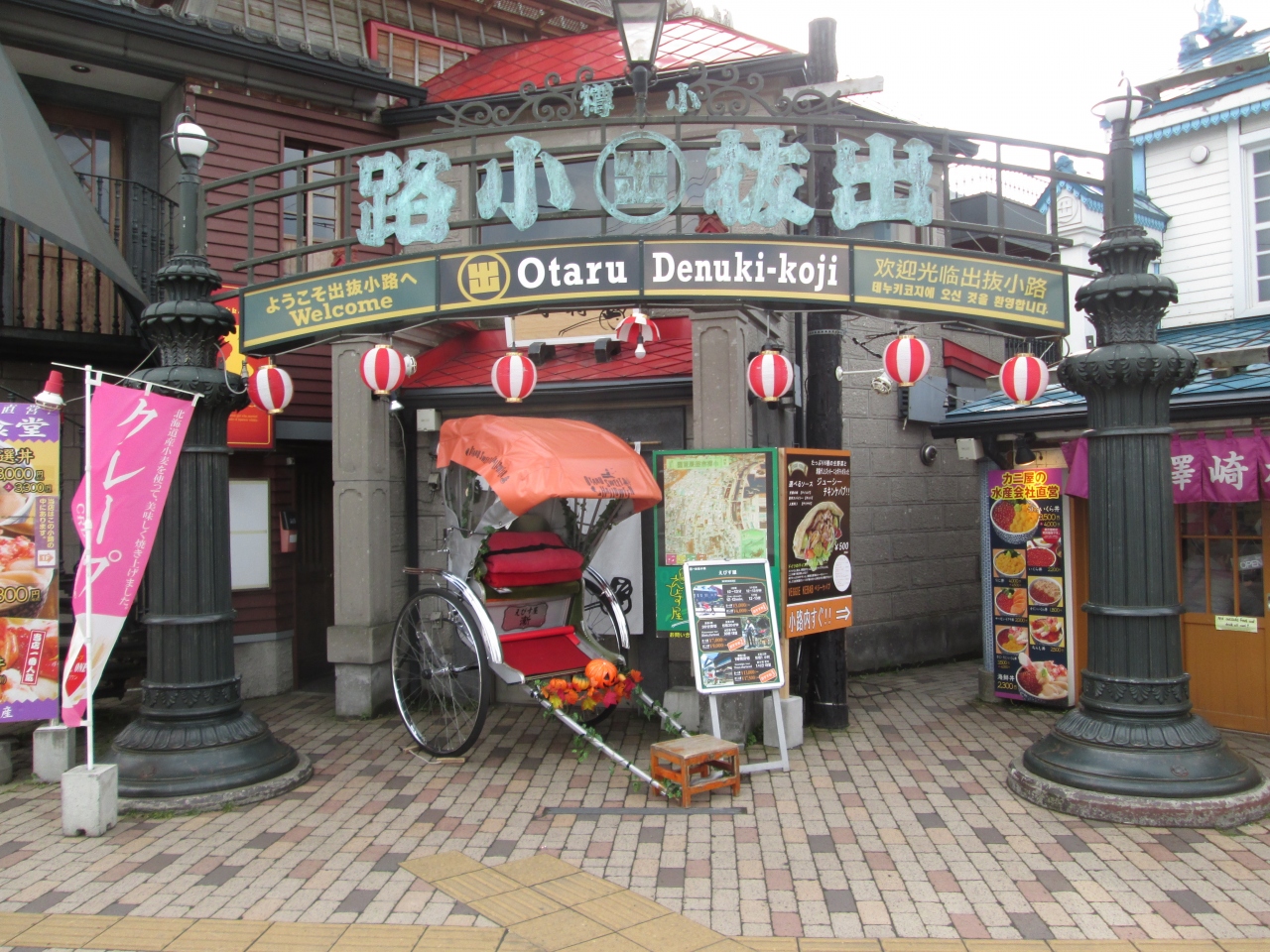 飲食店が集まる屋台村で、小樽運河の記念撮影が行われる浅草橋の交差点付近にあります。明治、大正時代を思わせる雰囲気で、火の見やぐらが目立っていました。他には、壁から張り出した小屋根がついた袖壁「うだつ」、建物の屋根には鎮座している「しゃけほこ」など敷地内には見どころがありました。