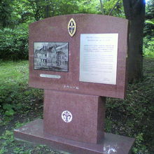 校舎だった建物の絵も碑に残っています。当たり前ですが、洋風の大きなお家的な外観です。関東大震災って、本当に多くのものを破壊してしまったんだなぁ…と、実感します。
