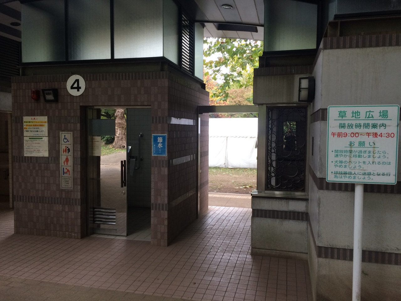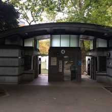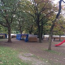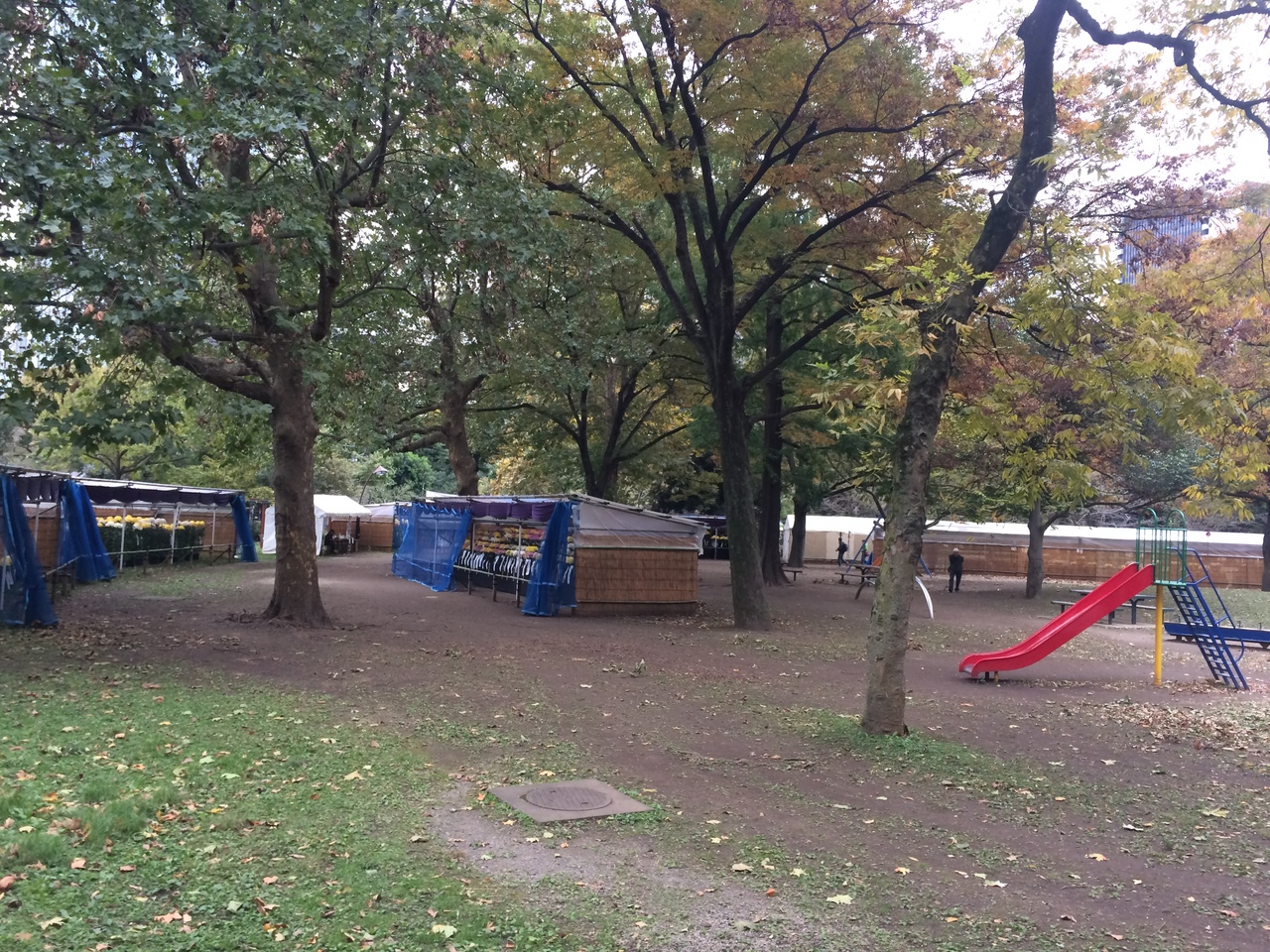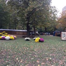 午前9時から午後4時30分までの開放時間があり柵に囲まれ出入口は2箇所ありました。面白いのは1箇所はトイレの中央が門になっています。滑り台等子供の遊び場もあり、ところどころ木々が植わっています。訪問時は菊花が開催されてました。