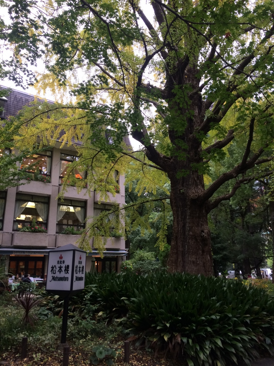 日比谷公園内のレストラン松本楼の目の前にある巨木で、松本楼と併せて写真を撮ると良い風景でした。昔は日比谷交差点付近にあり、伐採されそうなのを見て、首にかけても移植されると言った人がいて、現在の位置にあります。