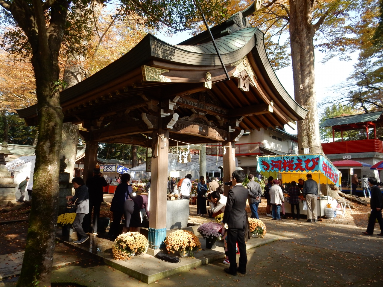 秋晴れの下、着飾った子供連れが大勢訪れていました。微笑ましいですね。他人ではありますが、かわいい子供達の健やかな成長を願わずにはいられません。菊祭りも行われていて、楽しむことが出来ました。駐車場は境内の内外でかなりの数が停められます。神社の手前右方向奥に、きれいなトイレが整備されています。