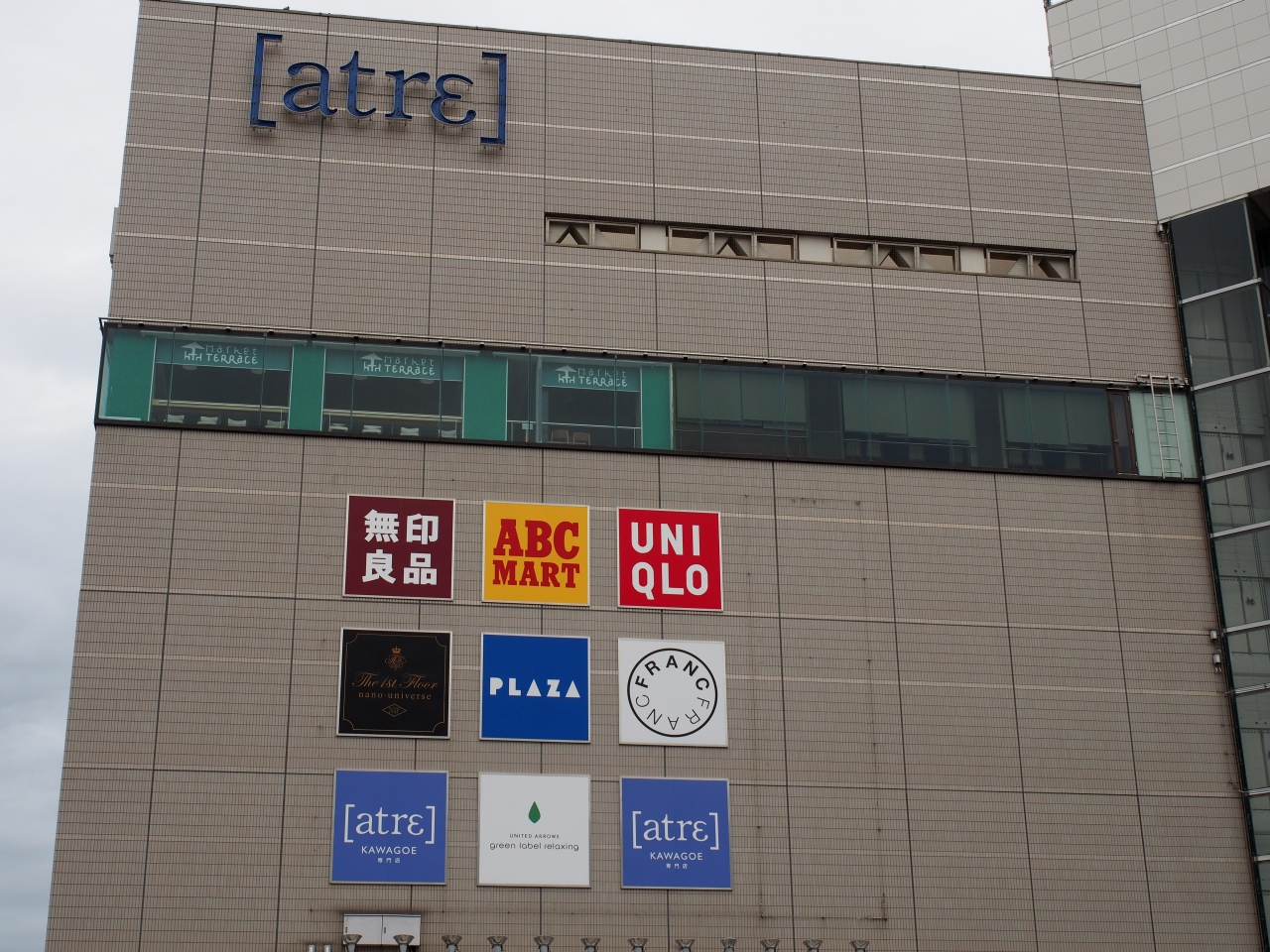 川越駅の目の前にある商業ビルです。アトレというと必ず駅の上にある、駅直結の商業ビル名だと思っていたので、駅にくっついていない姿が新鮮で驚きました。