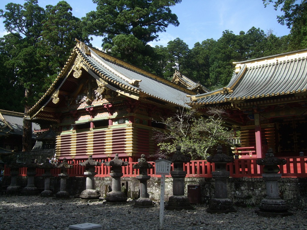 日光東照宮の有料区域最初の表門をくぐるとすぐに、正面に校倉造りの建物が三棟並んでいます。下神庫、中神庫、上神庫という倉で、三つ合わせて三神庫と呼ばれています。