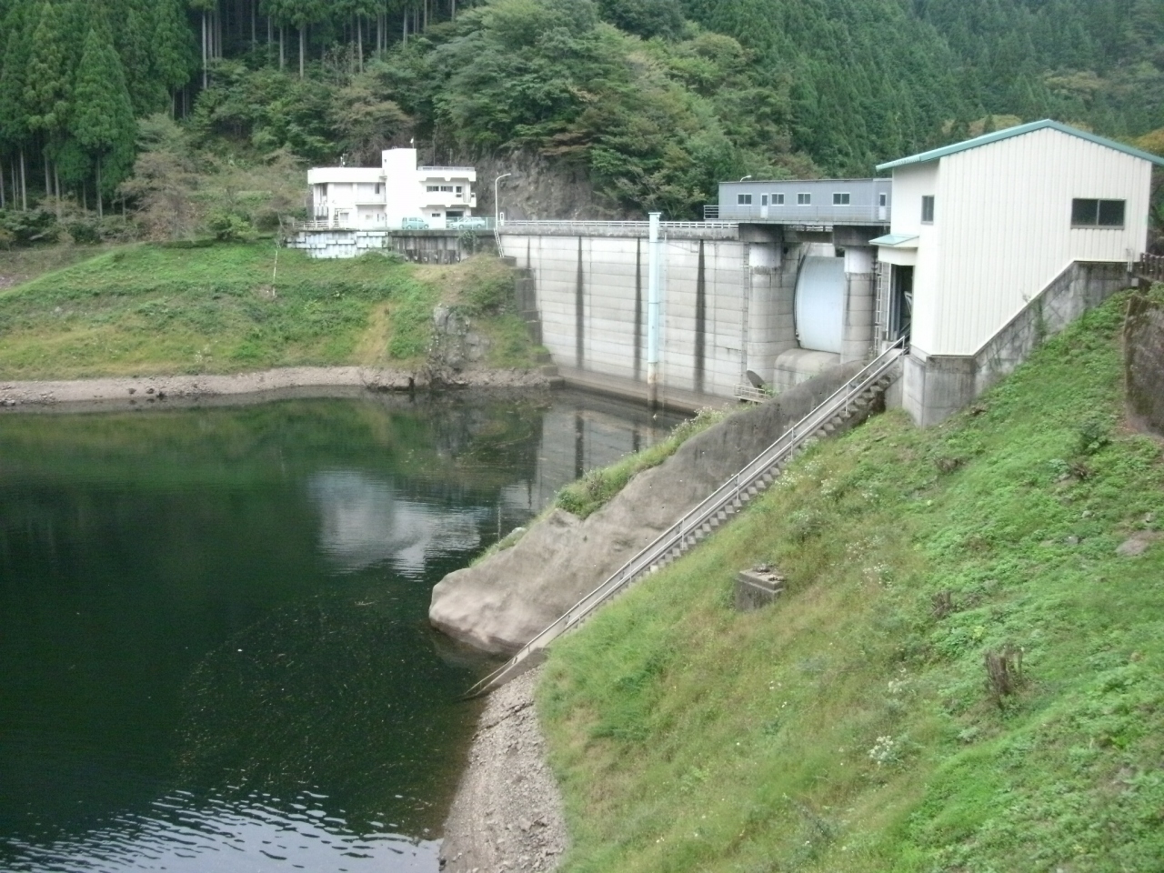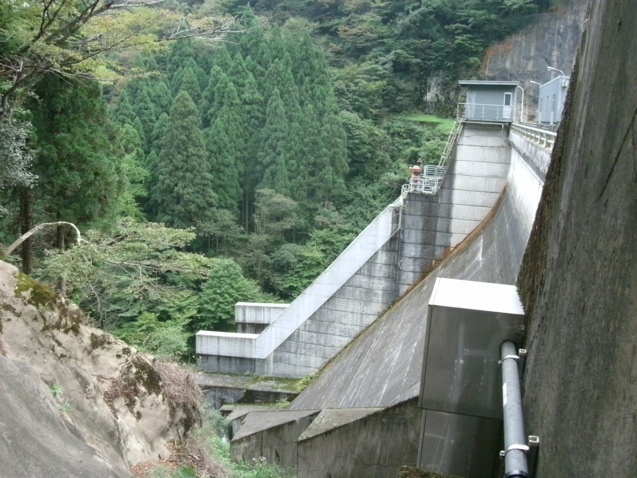 洪水防止と水力発電を目的とした堤高46.5m、堤頂長105mの重力式コンクリートダムです。中央にクレストゲート1門を備えただけのシンプルな構造で、ダムの周辺も展望台や公園として整備されていないため、ダムマニア以外には特別オススメするポイントはありません。ダムの仕様や構造などを示す詳しい説明板がダムサイトにあれば良いのにと思いました。