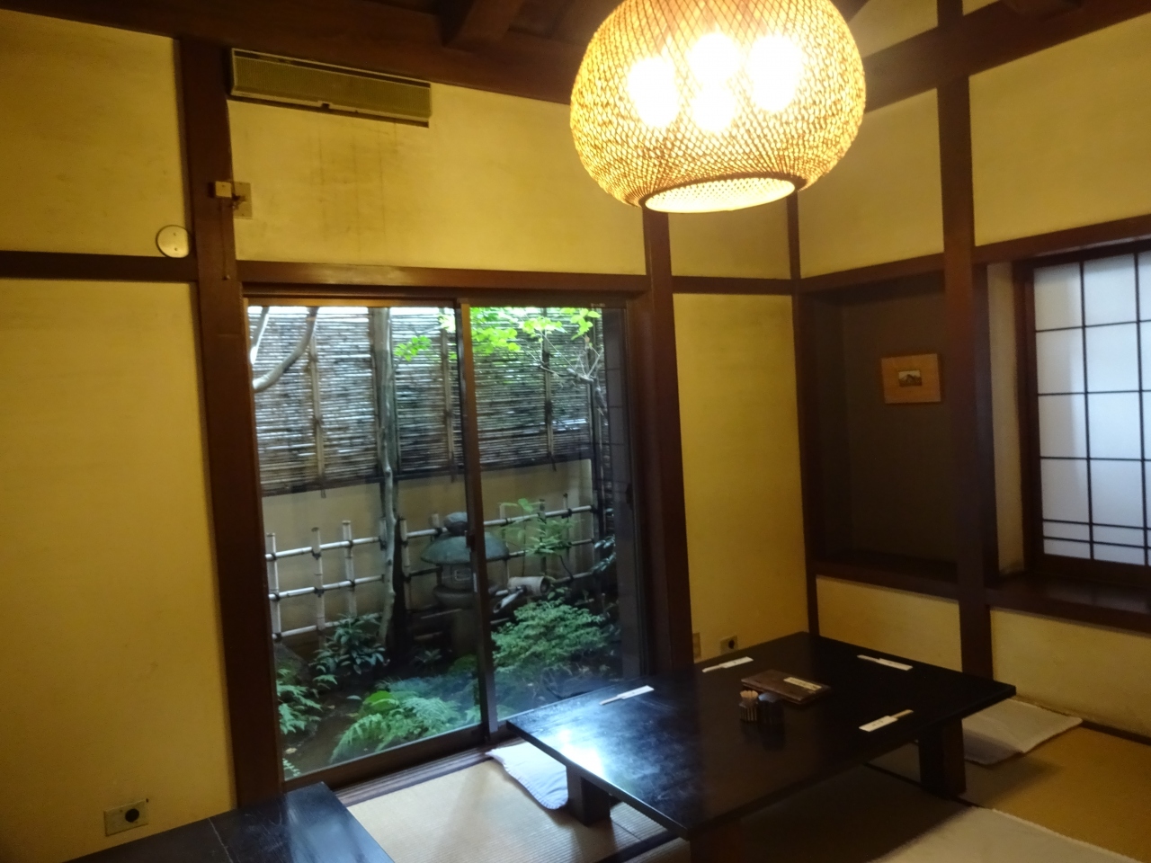 和室で、きれいな庭がながめられ、なかなかよい雰囲気ですが、近頃少々足の具合が良くない有人にはちょっときつかったかも。