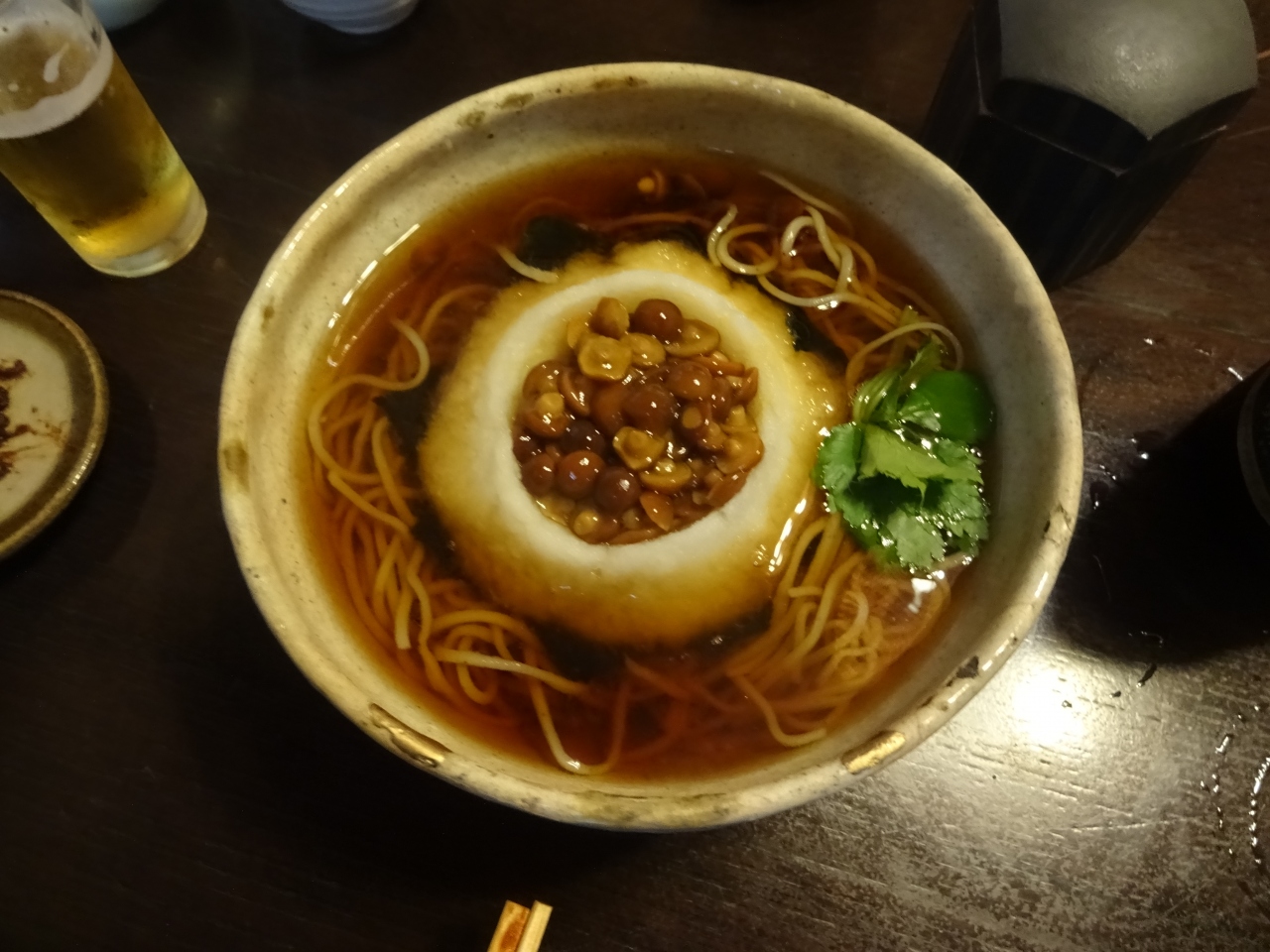 私はナメコ蕎麦を注文したら真ん中に大根下ろしが円形状に入っていて、その中にたっぷりのナメコ。なかなかお洒落な演出です。