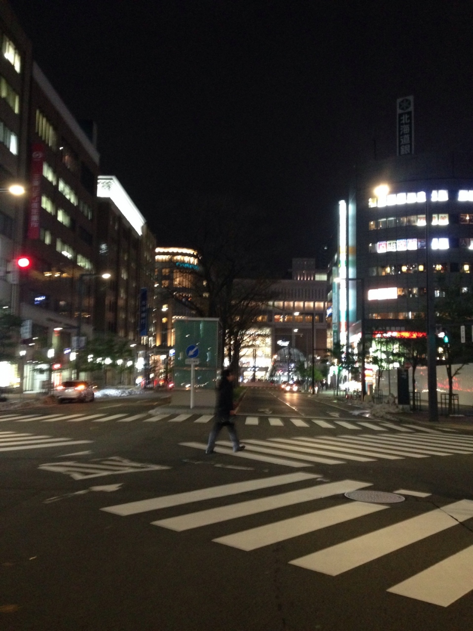 JR札幌駅の前を南北に伸びる大通り。この下に地下歩道があるのですが、外が大好きな自分は一白2日の滞在中ここを3往復ぐらいしました。