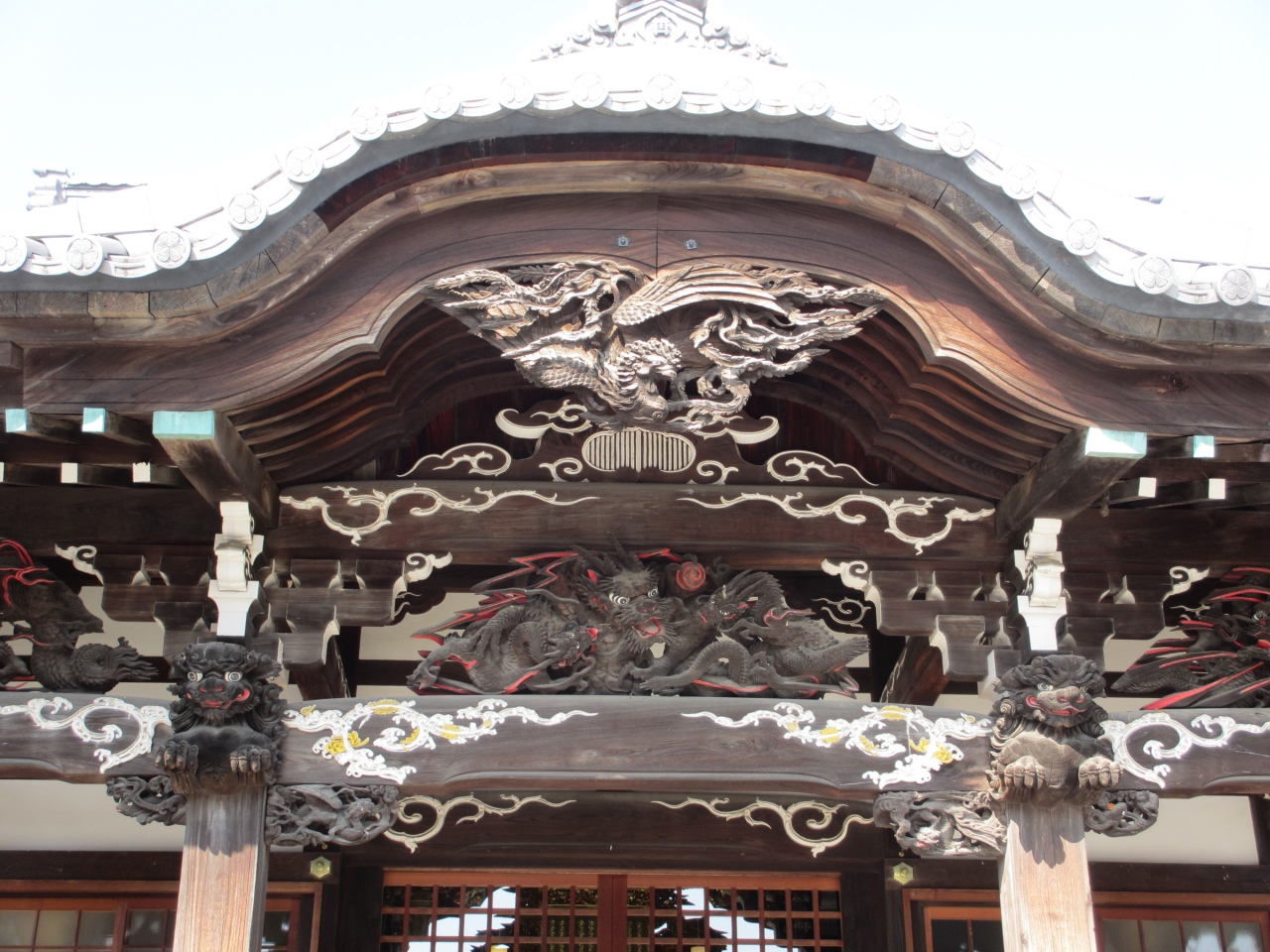 谷中に数ある寺の中でも、敷地が広く最も大きな寺の一つだと思います。寺を開山した日新上人が、幼少期における徳川家康の教育の師範であったことから、家康が寺の本堂を創建したと寺の境内にある絵画に書かれています。本堂の屋根には葵の紋が掲げられ、軒下には立派な彫刻が彫られています。墓地内には歴史上活躍した人も眠っています。本堂がある敷地から少し離れた所には、飯匙(しゃもじ)が飾られたお堂もあり、そこには安産の神が祀られています。