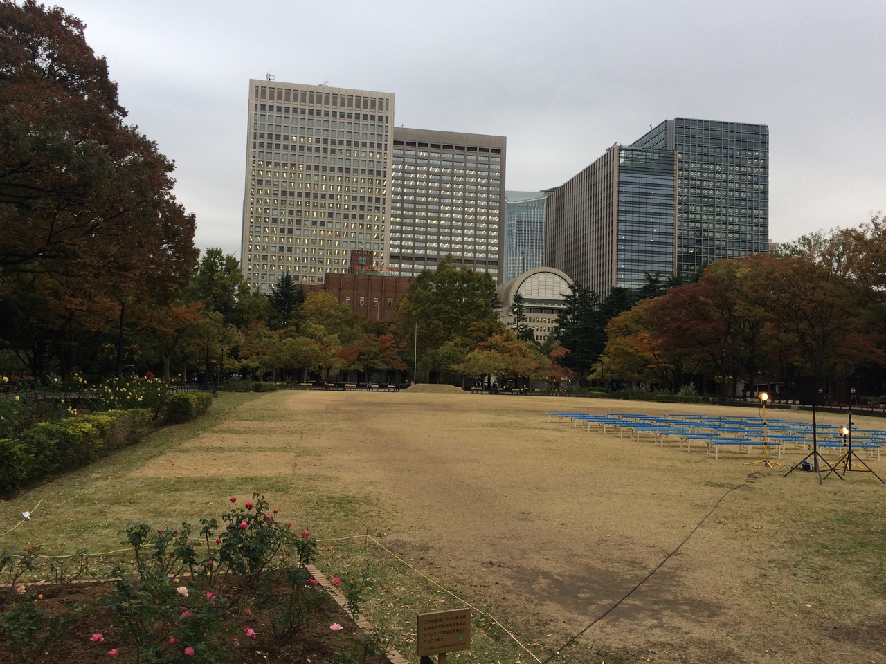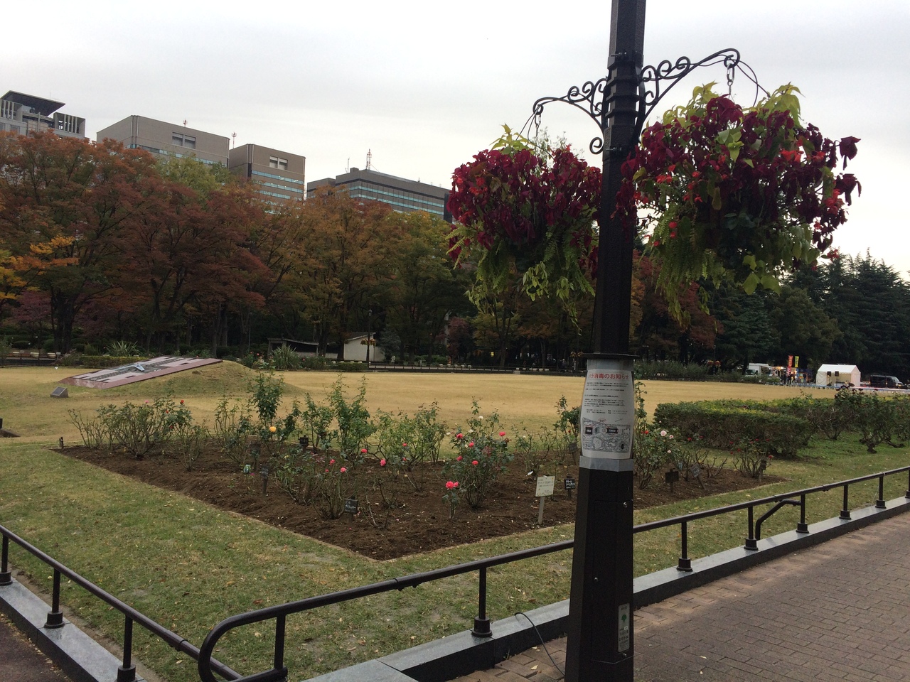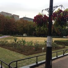 長方形側の大きな花壇で遊歩道は花壇の外側にありベンチ等もあります。遊歩道側に花が植えられていましたが、中央部には植えられていませんでした。隣接して大噴水があり、花壇内には太陽電池で動かしている大きな時計もあります。