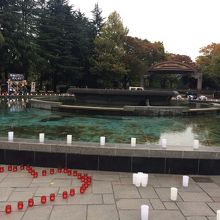 第二花壇に隣接している円形の大きな噴水で戦後復興の締めくくりとして設けられ、コンピュータ制御によりさまざまな変化が見れる噴水ですが訪問時は、水が出てなく残念でした。これからイベントなのか、噴水を囲んで出店が幾つかあり良い雰囲気で周辺は賑わっていました。
