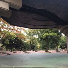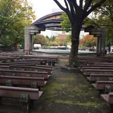 大噴水に隣接していて野外のミニコンサート場と言った感じ門や柵によって中に入ることは出来ないですが、外から見ることは出来ます。木々に囲まれ屋根はないですが椅子があり、少し老朽化していましたが、ゆっくり鑑賞出来そうな感じでした。