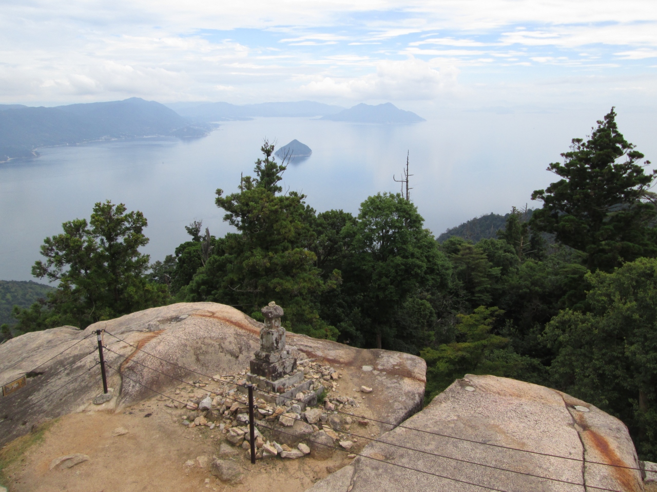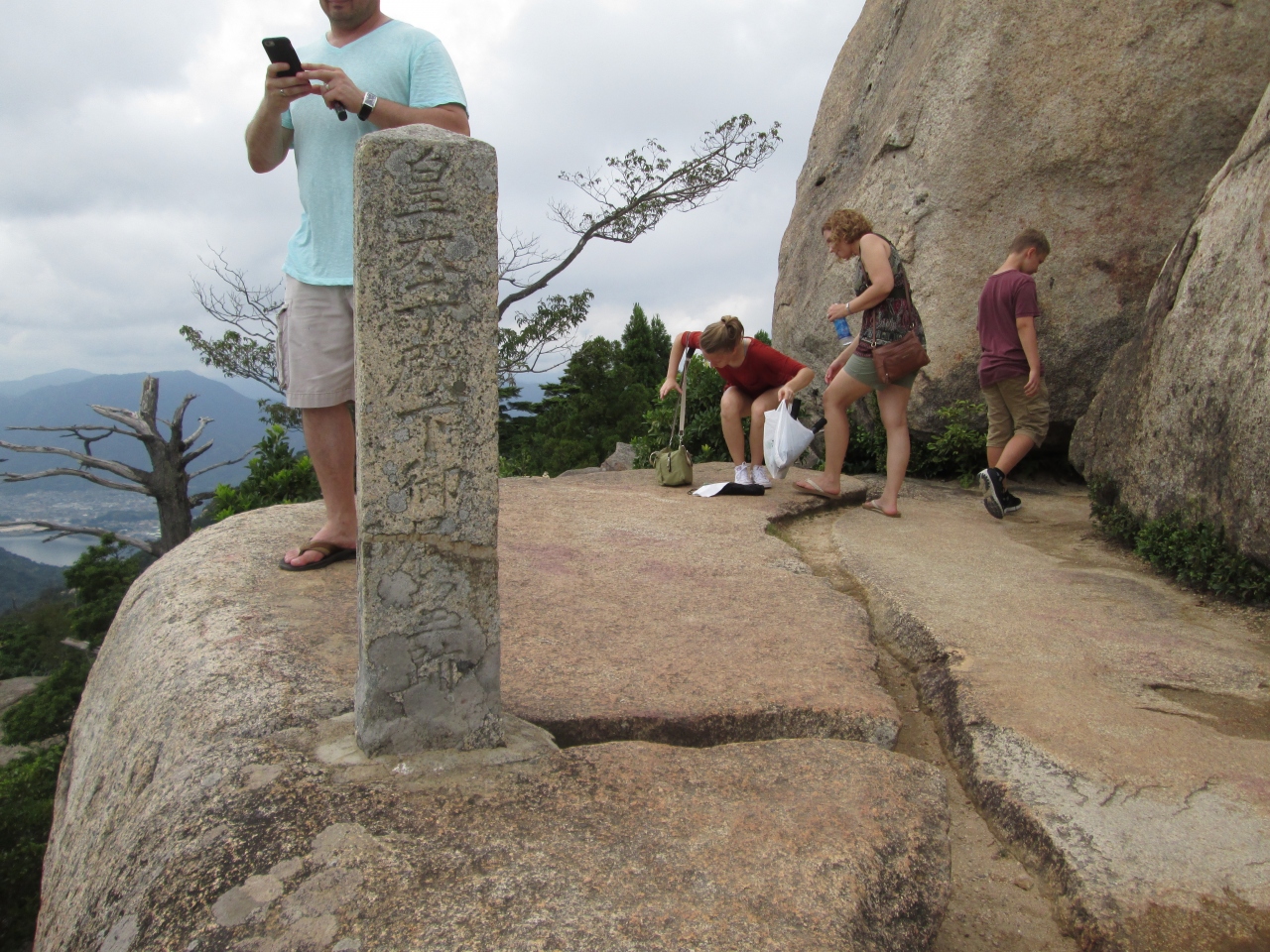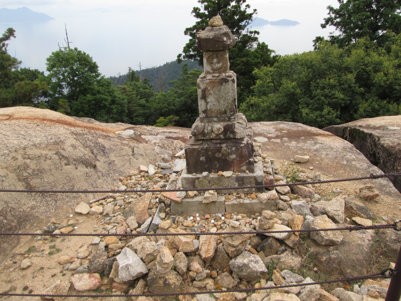 弥山山頂付近に皇太子様が登頂された記念碑がありました。大正15年5月27日、実際に昭和天皇が登山されたときのもので、24丁町石に書かれていました。他には、山頂までの途中に弘法大師が書かれたと言われる凡字の石もありました。