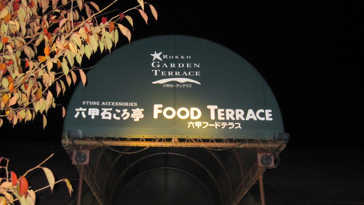 11月の6時半くらいに六甲ガーデンテラスに着きました。気温3度の澄み切った空気の下、夜景が本当に綺麗に見えました。ここの文字通りテラスでジンギスカンや焼肉やじゃがバタなどを販売しています。じゃがバタは300円でほくほくでした。テラスから内部に入ると、品揃えが充実したお土産やさんになっています。