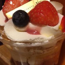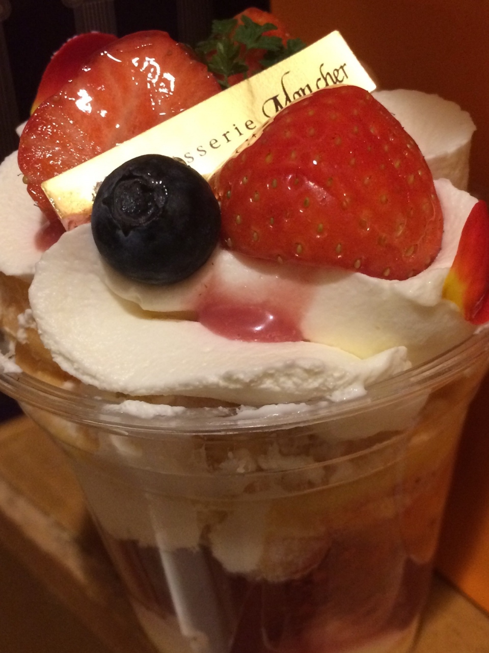 ストロベリーとチーズのパルフェをいただきました。生クリームがたっぷりで、ストロベリーとチーズのソースが相性抜群でとっても美味しかったです!