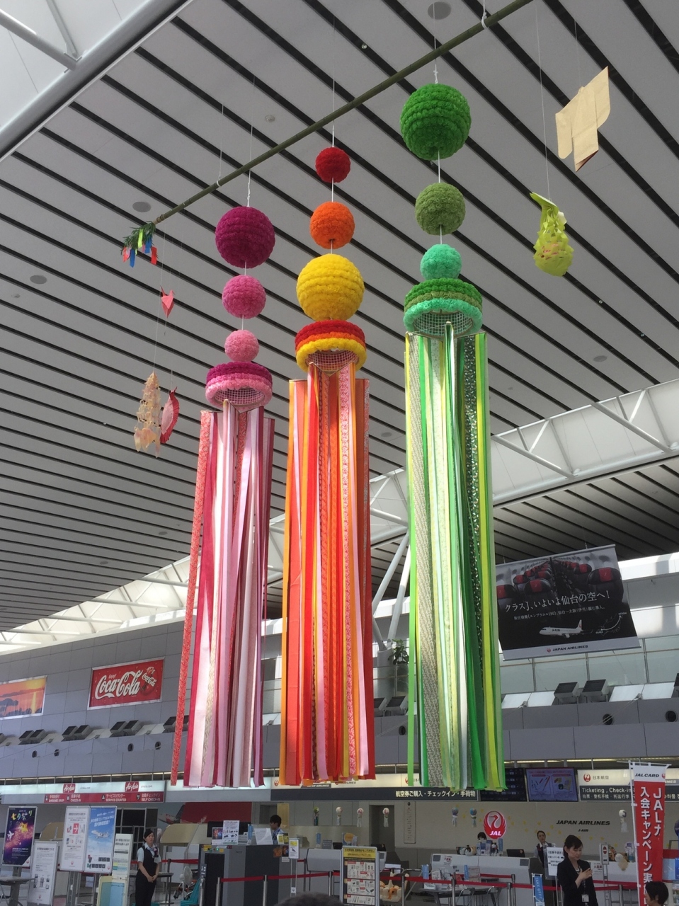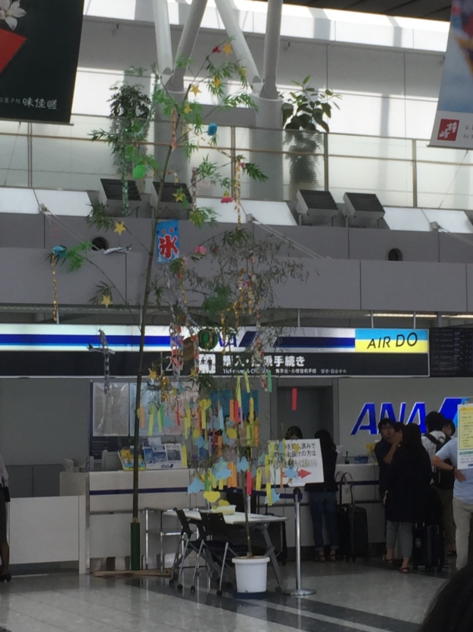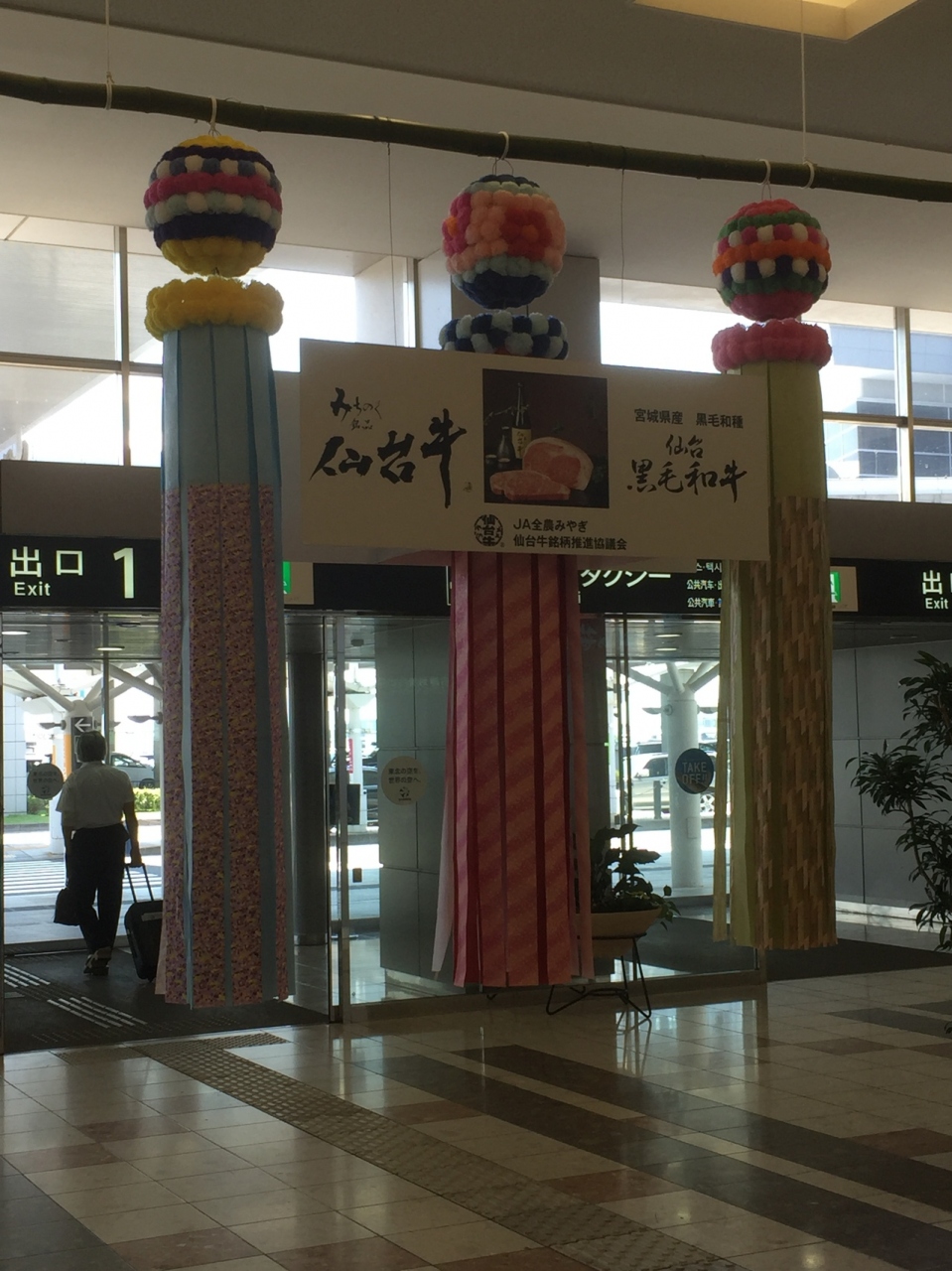 2011年7月以来(大震災の4ヶ月後)以来5年ぶりです。前回は空港もカウンターなどが仮設でした。今回はたまたま七夕祭りに重なり空港も混雑していました。空港内も七夕祭り一色、仙台市内に入る前から気分も盛り上がります。空港内も綺麗で案内板などもわかりやすかったです