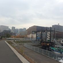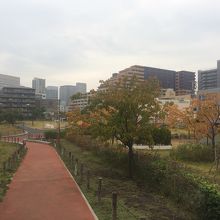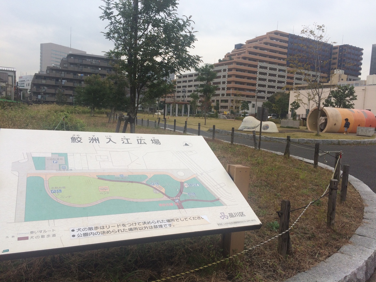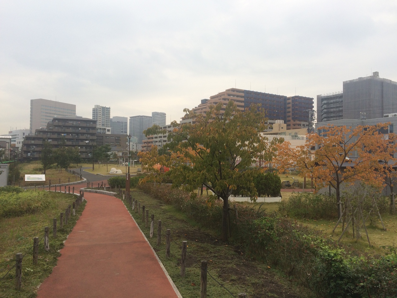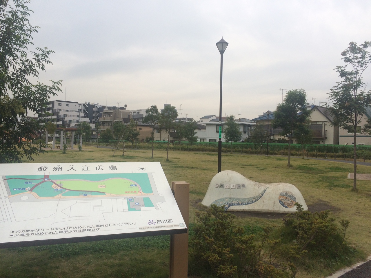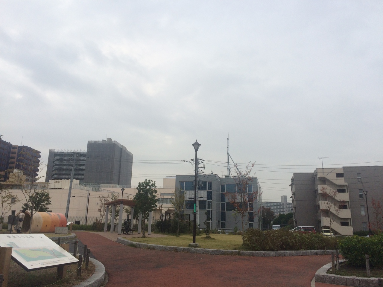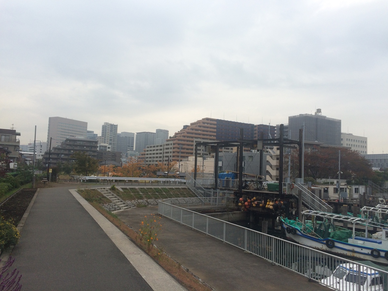 公園の横には釣り船が何艘が停泊していて良い雰囲気です。広場は住宅街とビルの隙間にあるような感じですが結構広くトイレや子供の遊び道具も幾つかあり、ベンチもあり芝生が綺麗です。景観は釣り船が停泊している川の方が情緒がありました。