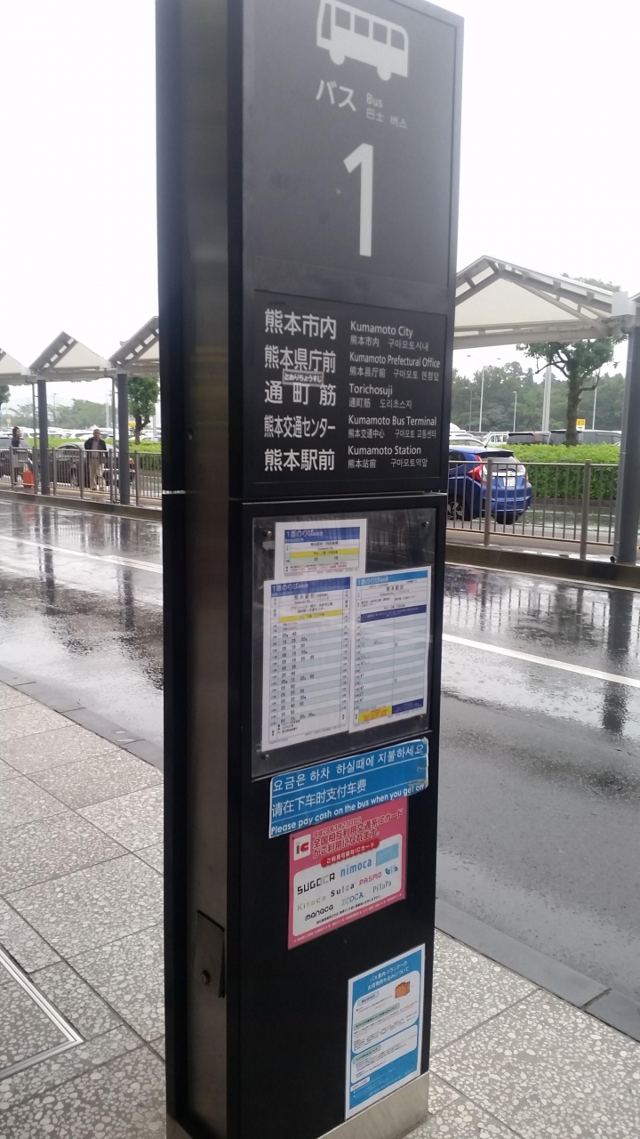 熊本空港から市内に出るための交通手段の1つです♪(^-^ゞ今まではタクシーで市内まで出ていましたが、このバスがある事を知り利用してみました♪本数は多いし、安いし、県庁前まで利用しましたが、乗車時間も30分掛からない位で着きました♪(^-^ゞバスの中も乗車率半分位でゆったり行けました♪これはオススメです♪空港から市内に出る方には良い交通手段ですよ♪(^-^ゞ