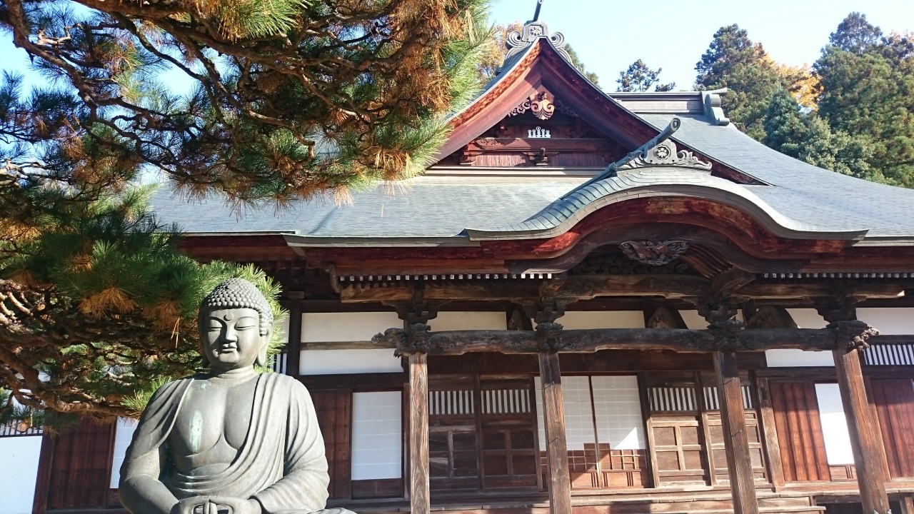 それほど大きくはありませんが、松や紅葉がとても美しいお寺です。二体の立派なお釈迦様が鎮座しています。訪れたときはたまたま法要中だったようで、中からご住職の声がしていました。観光客はあまり訪れないようですが、行ってよかったです。
