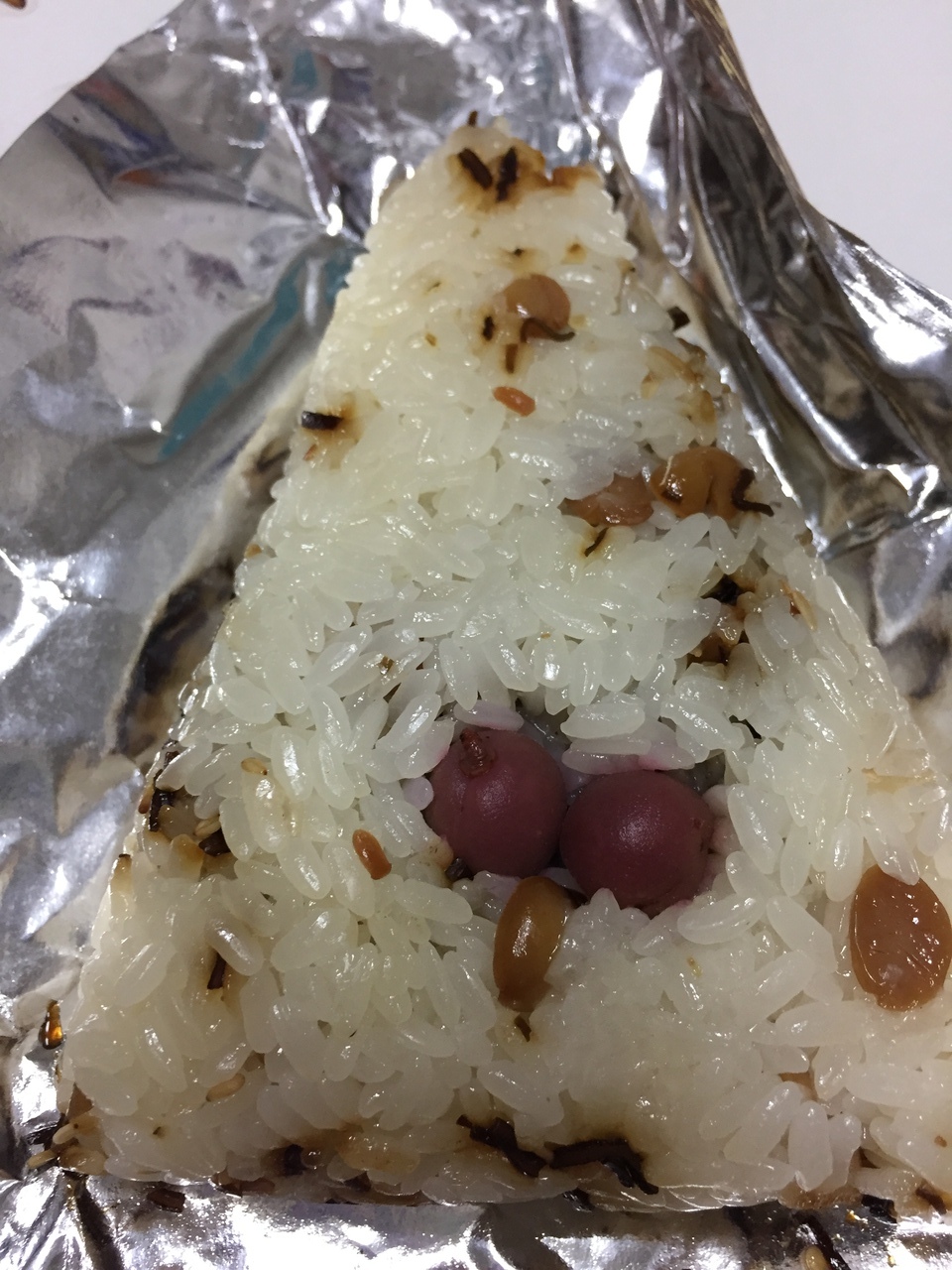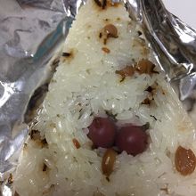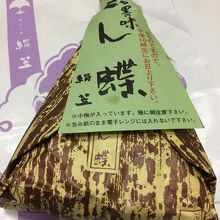 新大阪駅在来線構内にある駅マルシェ.大阪を始め近畿の銘菓,お土産が所狭しと並んでいます.ケーキやチョコなどがある一角に何やら独特の包装紙で包まれたとん蝶を発見.夕方に行くと売り切れで入手できないこともあるので要注意.餅米に大豆や塩昆布をあしらいカリカリ梅がトッピングされたおこわです.しっかりとした味付けで食べ応えも十分.ただ添加物が多いのが気になります.