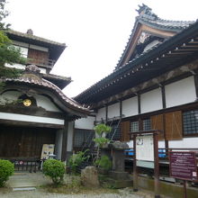 厳かな雰囲気漂う境内、本堂の隣には特徴的な三層楼があります。