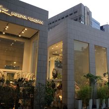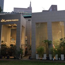 日比谷公園内にあり、遠くから見ると美術館かと思いましたが花屋でした。四角い白っぽい外観で店舗の前にはたくさんの花木が置いてありました。ガラス張りの店内で外からも店内が見え、天井からも花を吊るしていました。店内は狭いですが花屋でいっぱいです。
