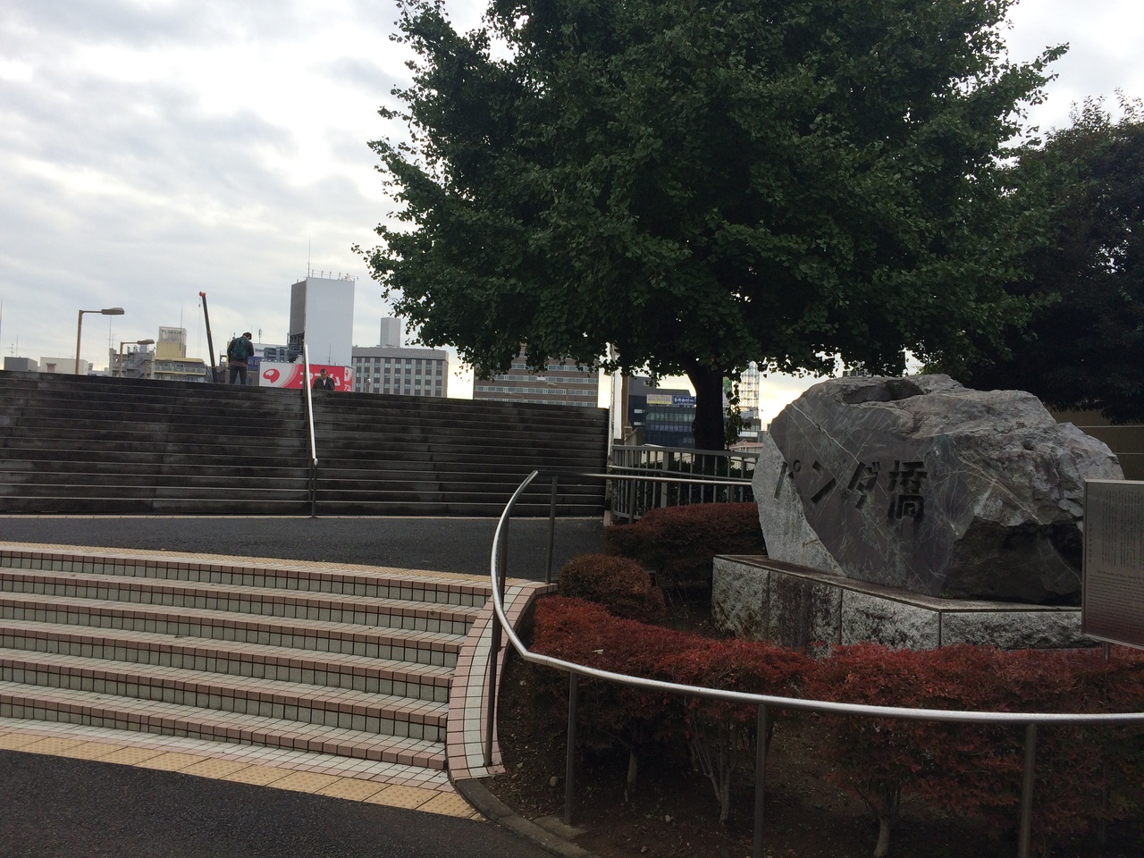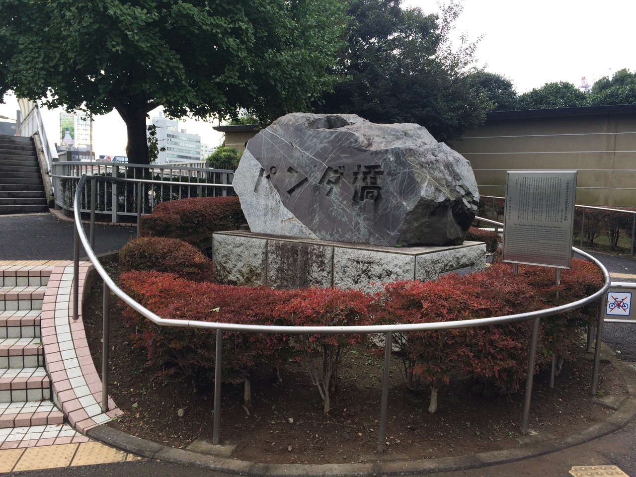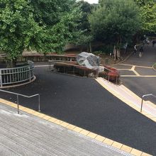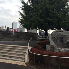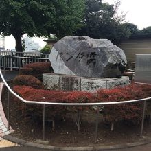 JR上野公園口の信号を渡り、左側にあり、石碑があり花に囲まれ柵もあります。パンダの銅像でもあるのかと思っていましたがありませんでした。公園口と反対側を結ぶ橋でJR線路を跨ぐことになり、人通りも多いです。