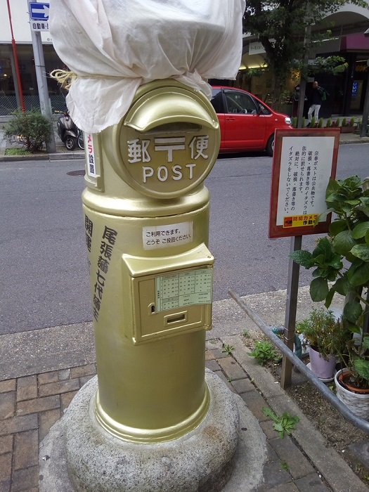 福岡では黄色い郵便ポストを見たことがありますが、金色とは華やかな街である名古屋らしいなぁと思いました。